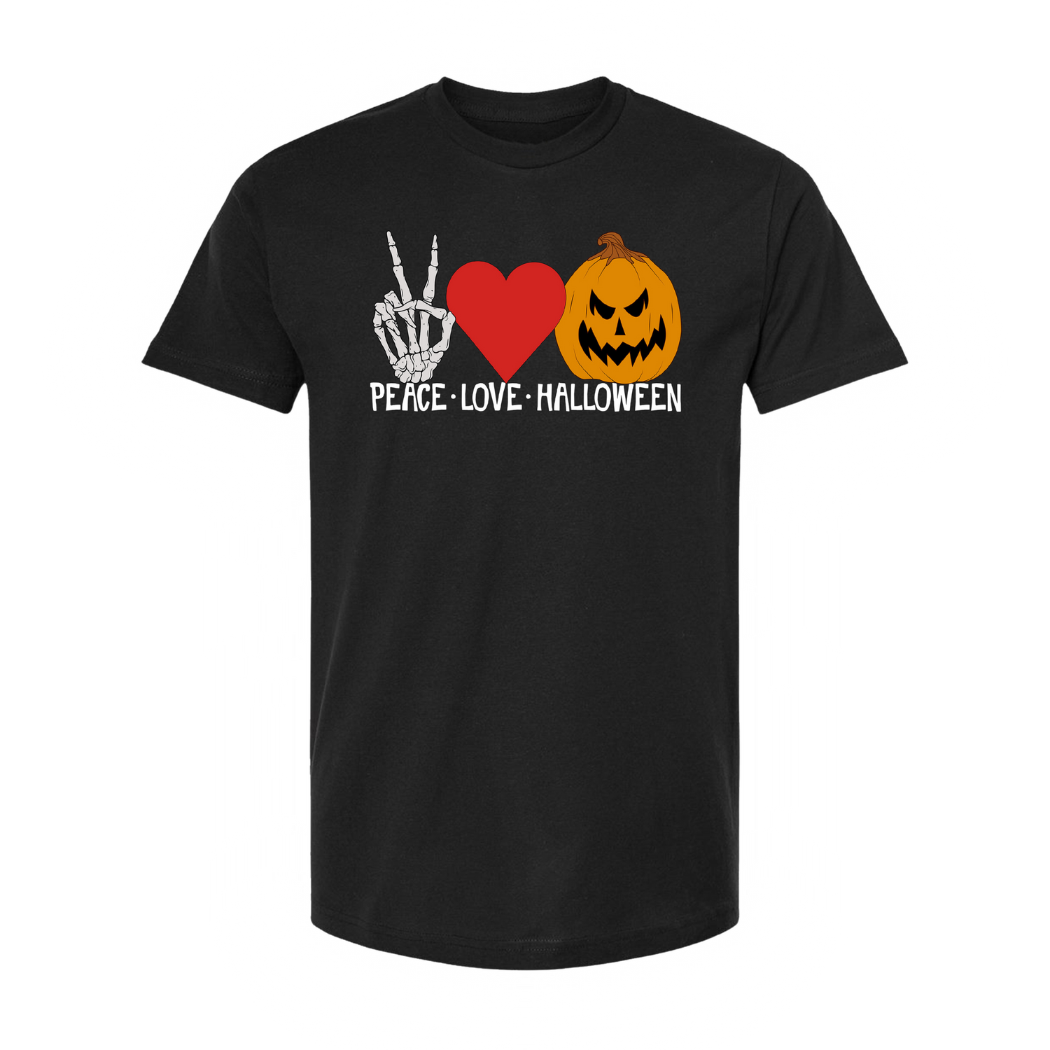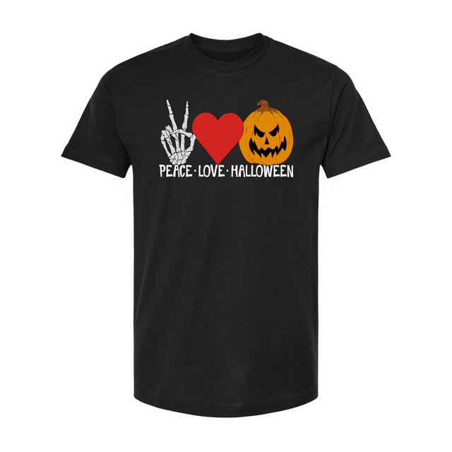 Peace Love Halloween Unisex Tee - Small est en rupture de stock et sera expédié dès qu’il sera de retour en stock.