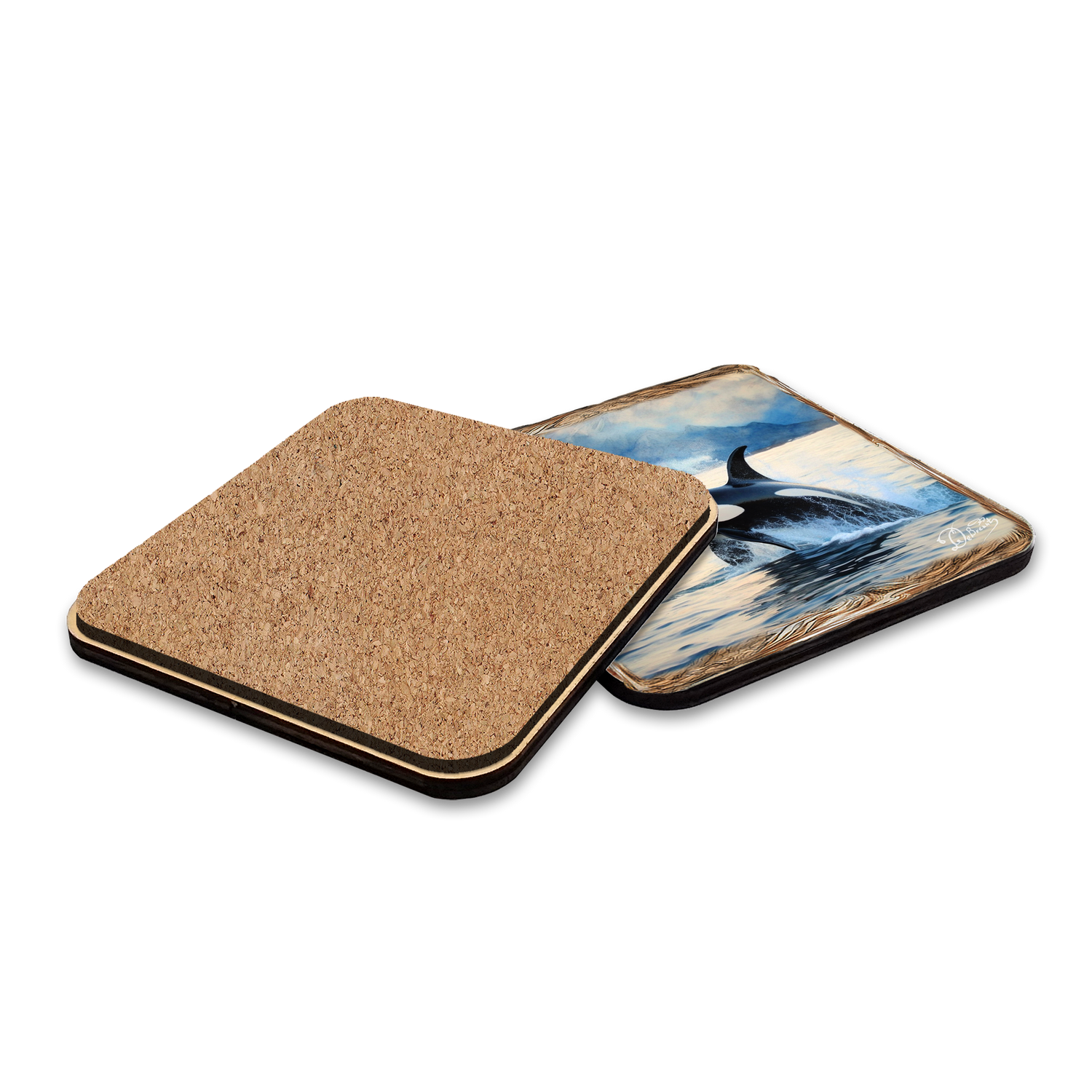 Enhance your dining experience with our Playful Orcas Wooden Cork Placemat and Coasters Gift Set. Crafted from high-quality cork, these coasters and placemats feature stunning designs of orcas, adding a touch of nature to your home decor. Made by Nature Wonders, this set of 7 protects your table and supports wildlife conservation efforts.