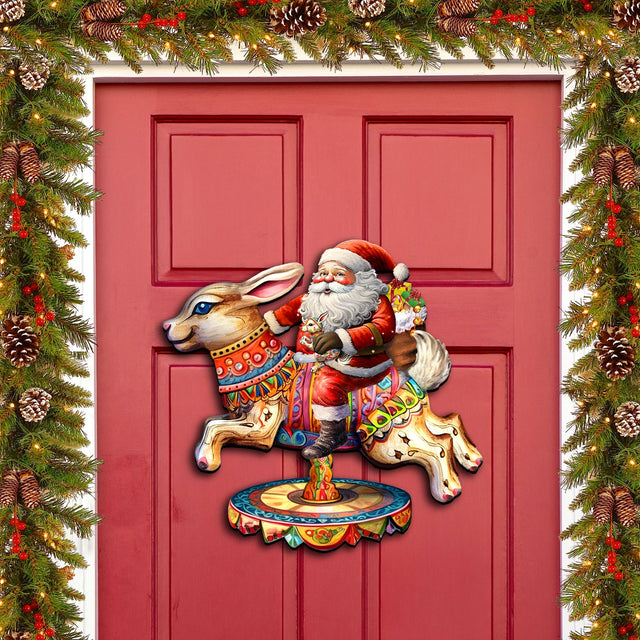 Santa Claus on Bunny Carousel Holiday Door Decor by G. Debrekht - Christmas Santa Snowman Decor - 8611067H