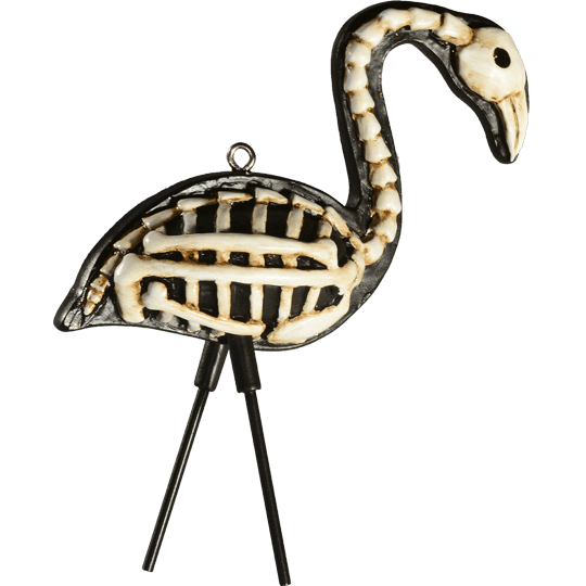 Black is the new pink, haven’t you heard? We’ve sucked the brightness out of this cute creature and given her a revamp (emphasis on the vamp). Now, with bones protruding, she adds a bit of spunky flair to any tree she inhabits.
