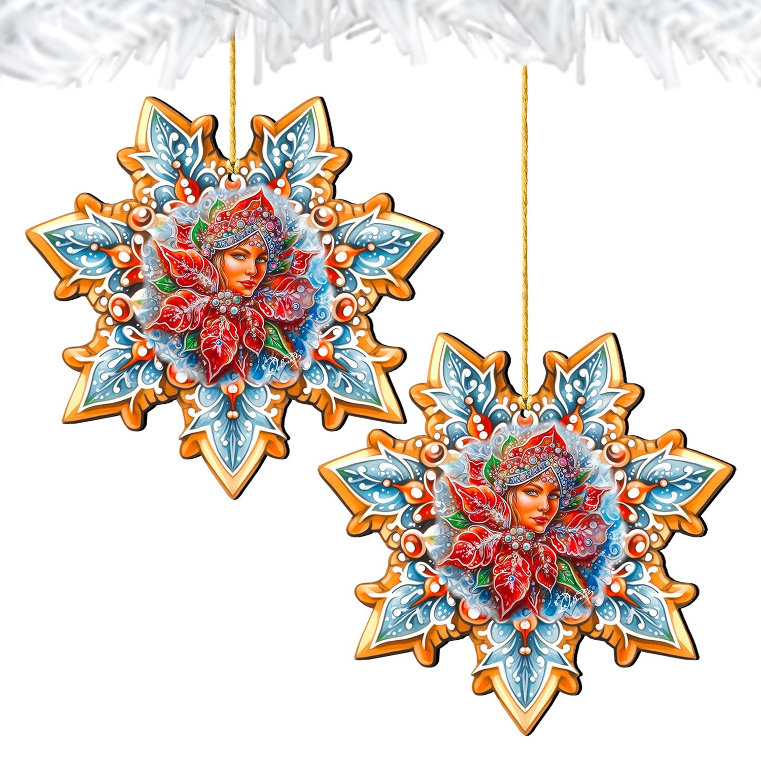 Snow Maiden Snowflake Wooden Ornaments by G. Debrekht - Christmas Decor - 8688401