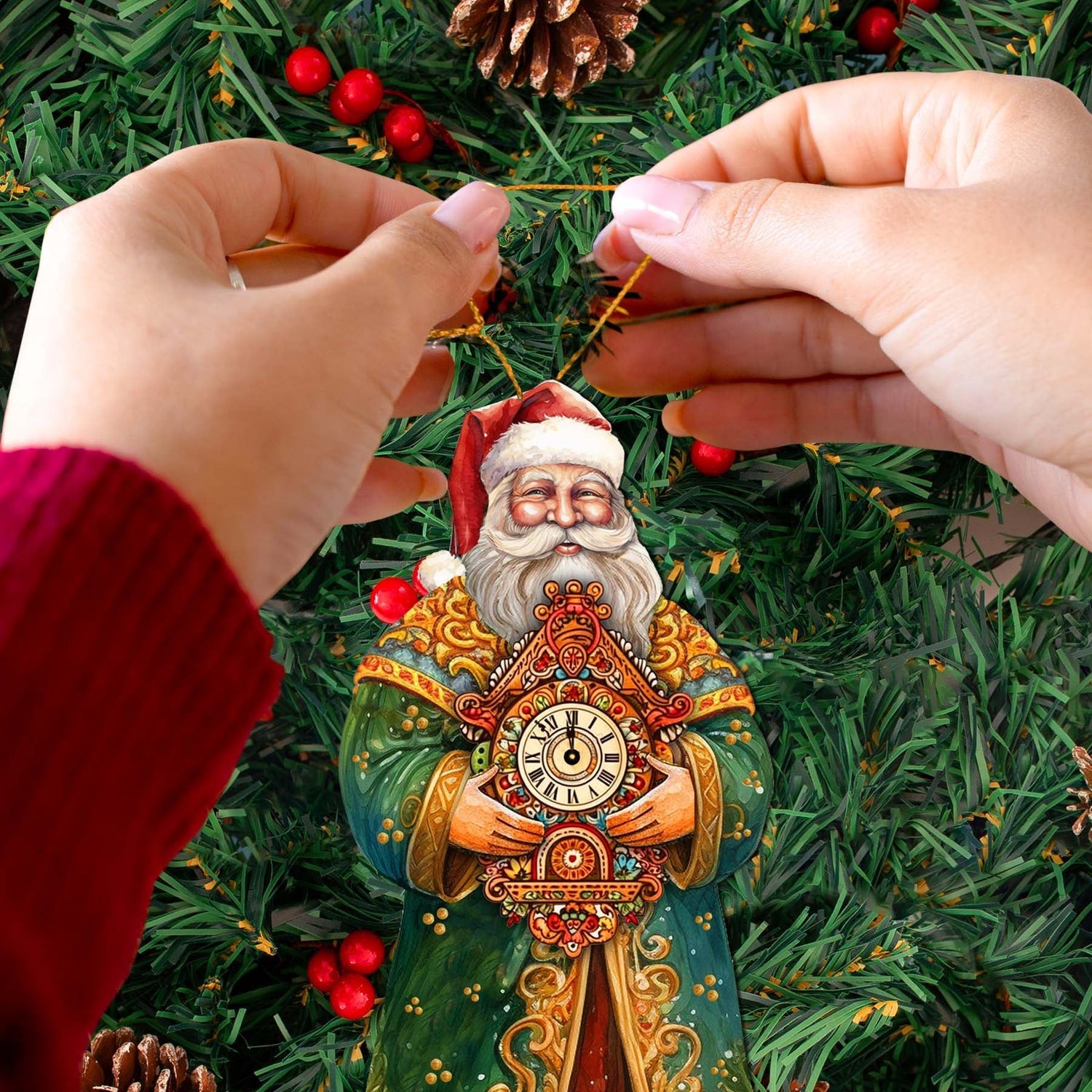 St. Nick's Magic Clock Wooden Ornaments by G. Debrekht - Christmas Santa Snowman Decor - 8691412