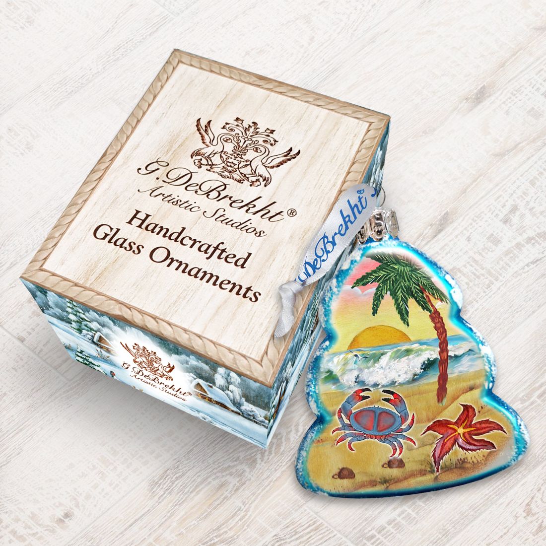 Looking for Crab and Palm Trees hand-blown Vintage Glass Christmas Ornaments? Discover our exceptional small glass ornaments- delightful creations, handcrafted, painted, and Decorated by skilled artisans at G. Debrekht artistic Studio- handmade in the USA