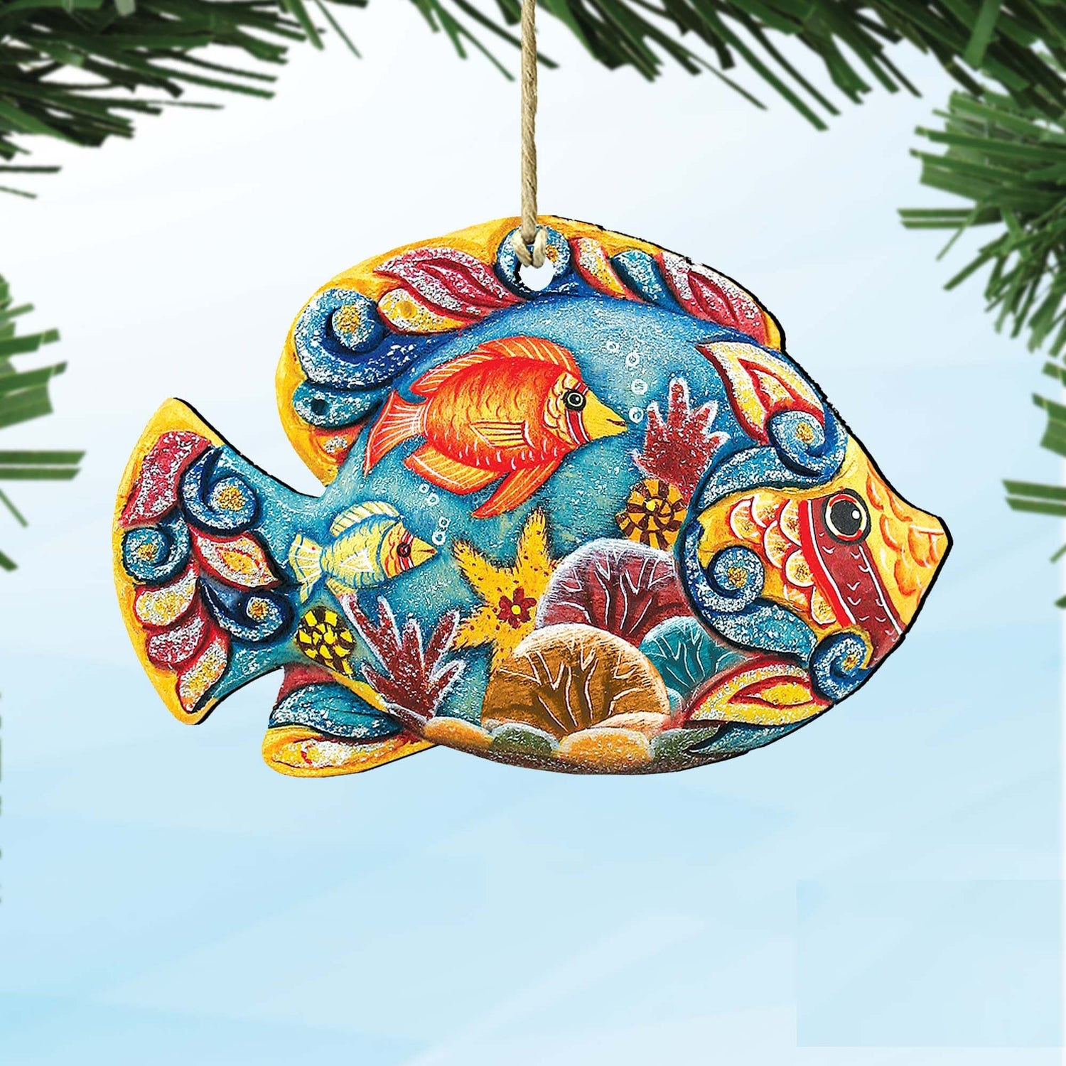 Tropical Fish Christmas Wooden Ornaments by G. DeBrekht - Coastal Holiday Decor - 8126121