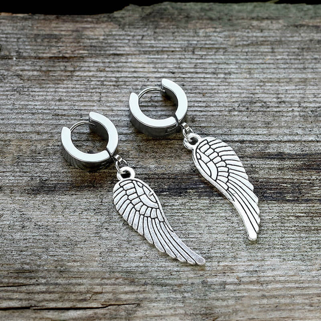 These Angel Wings Stainless Steel Hoop Earrings are the perfect accessory for any outfit. Crafted with stainless steel and alloy, they are durable and stylish, sure to complete any look. Perfect for daily wear or special occasions.