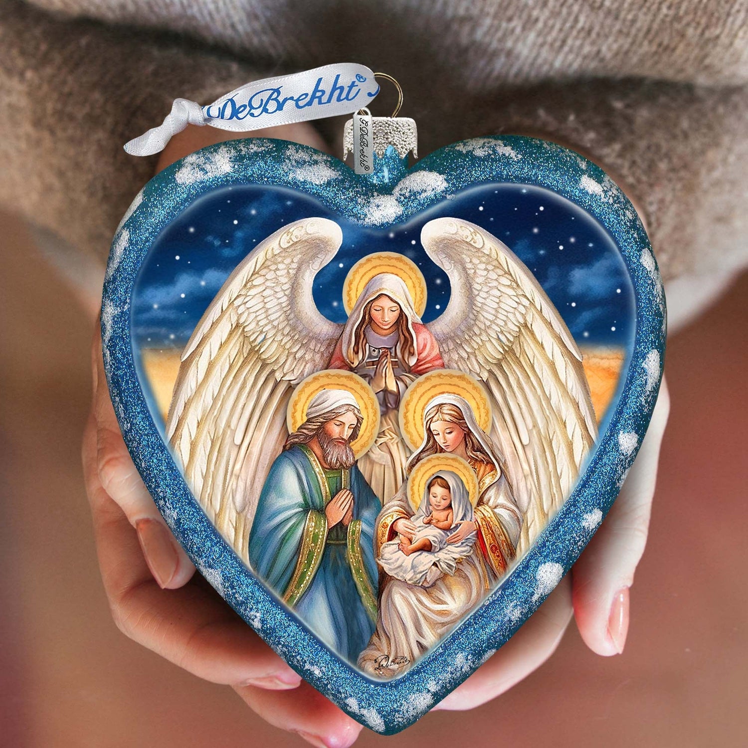 Angel's Divine Presence Nativity Heart Glass Ornament by G. Debrekht - Nativity Holiday Decor - 738-094