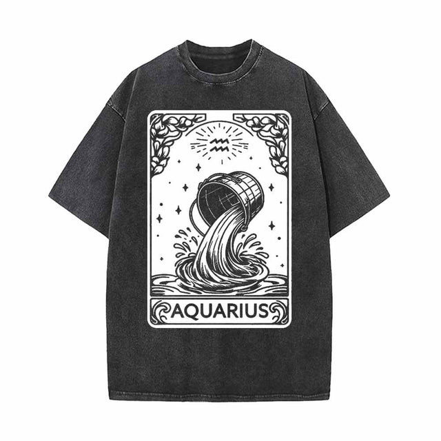 Aquarius Tarot Card Horoscope Vintage Washed T-shirt