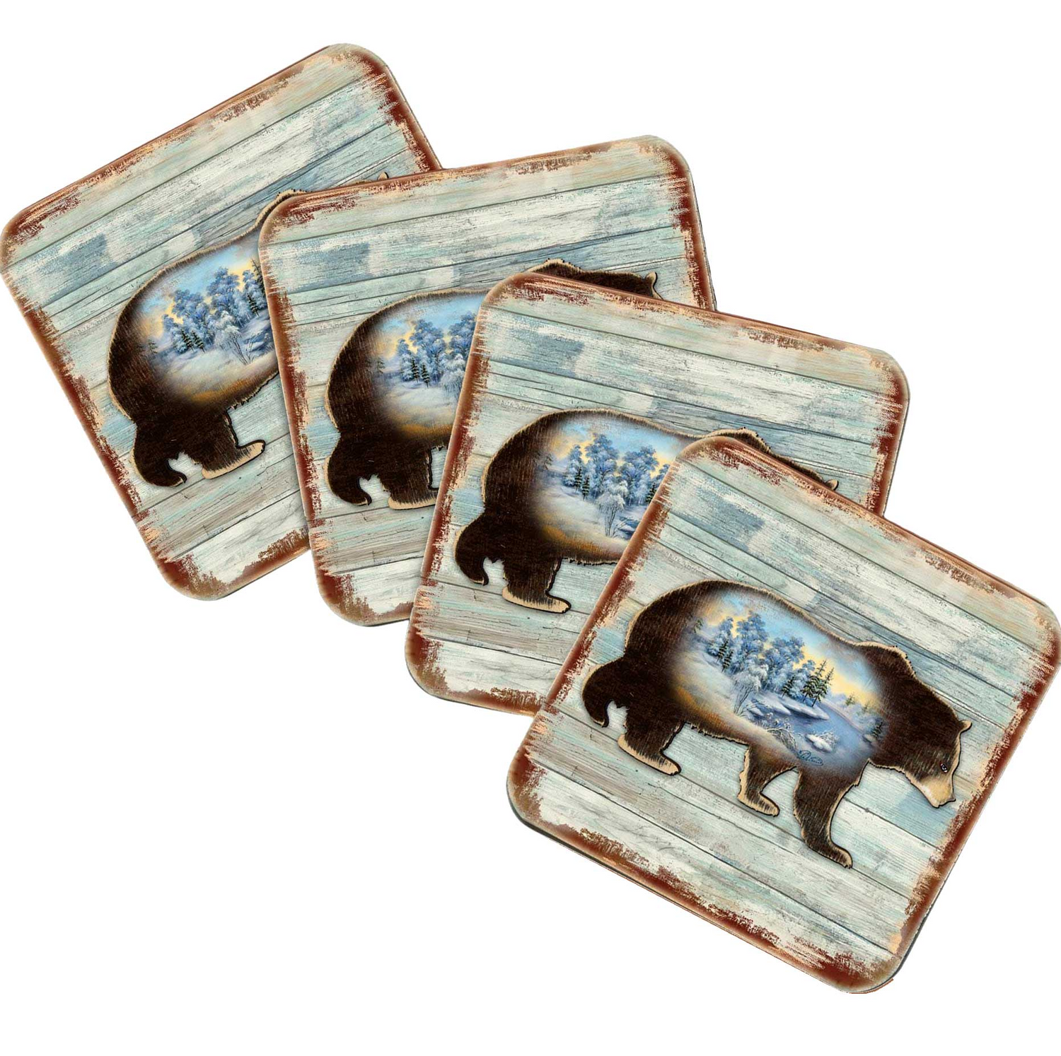 Custom or Unique designs of wooden Coasters from premier manufacturers of Decorative art. Shop today at our Home and Living Store for small batch Limited-Edition handmade in the USA products like our Bear - moisture Absorbing Coasters Gift Set with thin Cork bottoms.