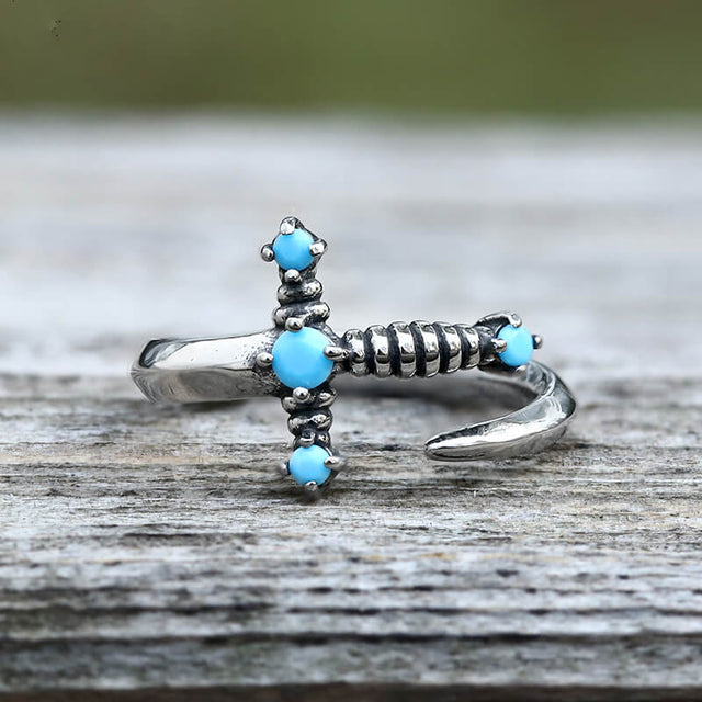 Bent Sword Stainless Steel Gothic Ring - Blue / 6 is backordered and will ship as soon as it is back in stock.