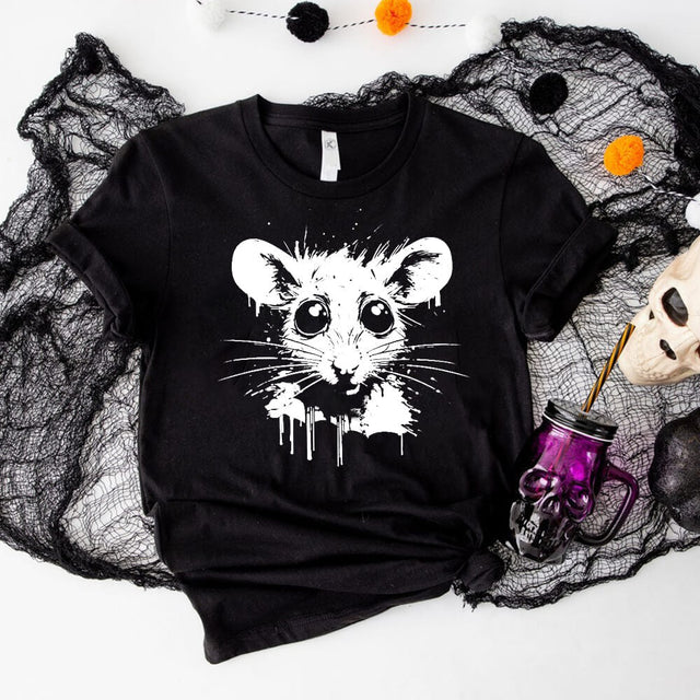 This short sleeve t-shirt features a cute mouse with big eyes. Made from high-quality materials, it offers both comfort and style. Perfect for those who love adorable fashion and comfortable clothing. Show off your love for cute animals with this cute mouse t-shirt.