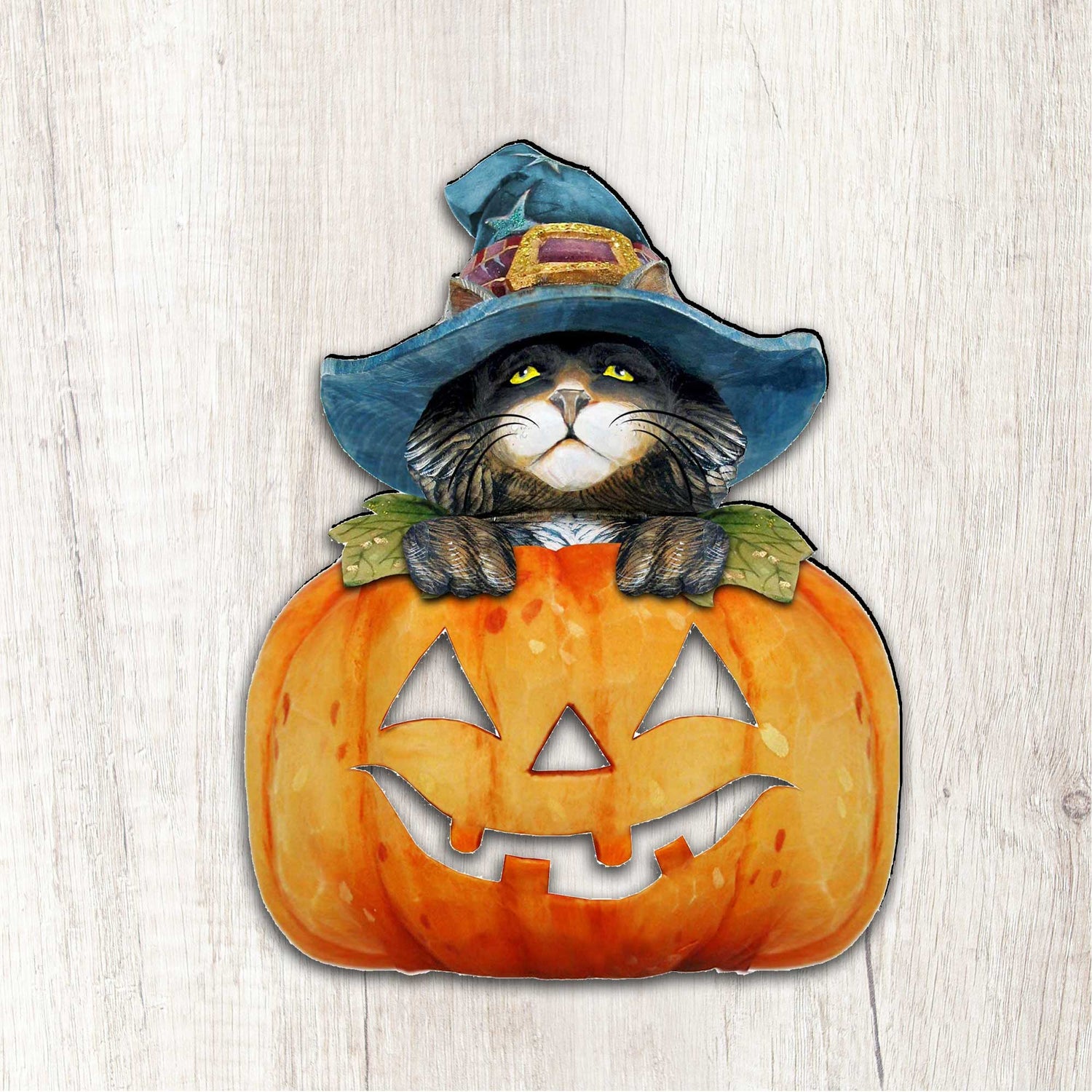 Inviting Door Decor Welcomes the Holiday Spirit. Shop Today for Cat with Pumpkin in a Hat wooden front door Halloween Decorations. Visit G. Debrekht Holiday Store and discover world-renowned artists' collections at your fingertips- all handmade in the USA.