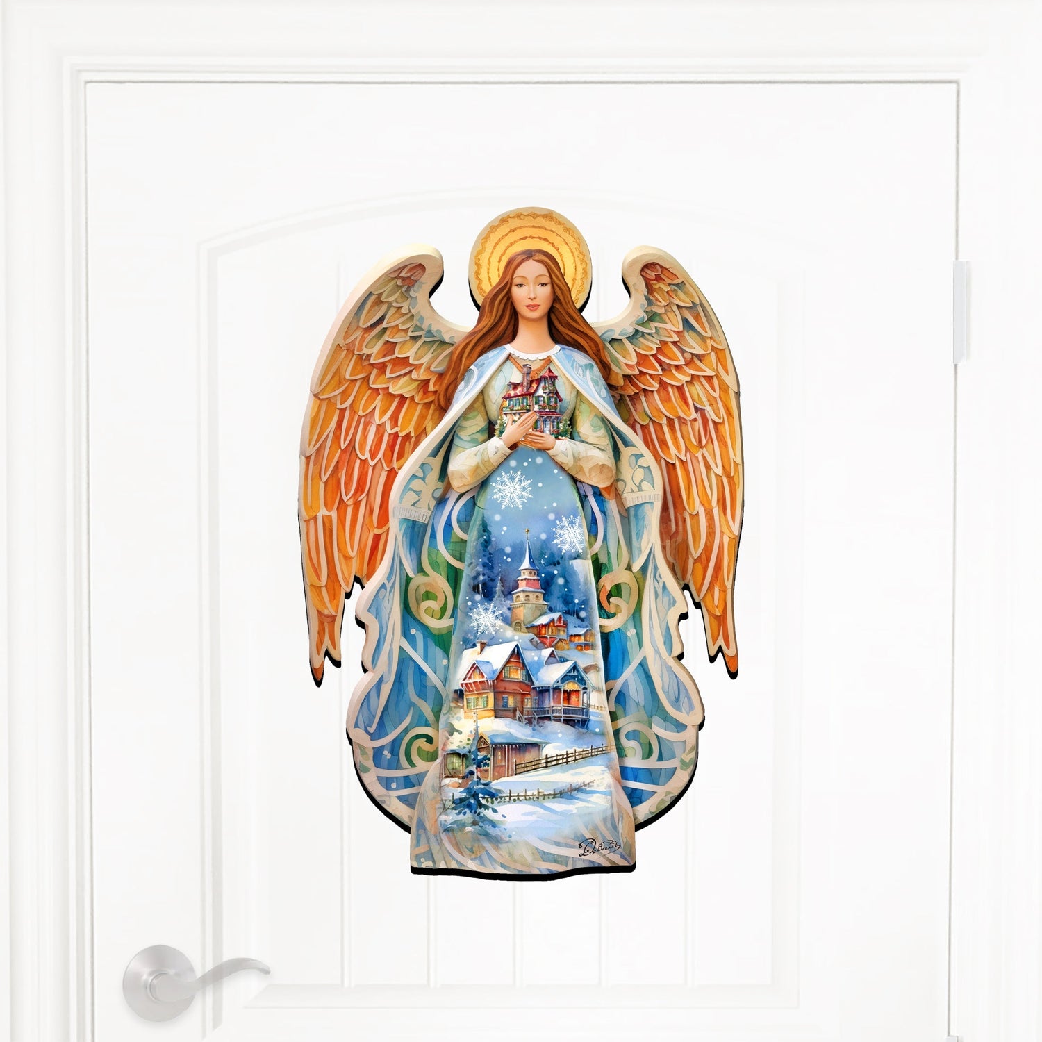 This festive holiday Decor by G. Debrekht, the Angel Holiday Door Decor, is a must-have for any Christmas celebration. Featuring intricate detailing with vibrant colors, this piece will be a stunning addition to any home's holiday decorations. Enjoy your holidays with this beautiful Decor!