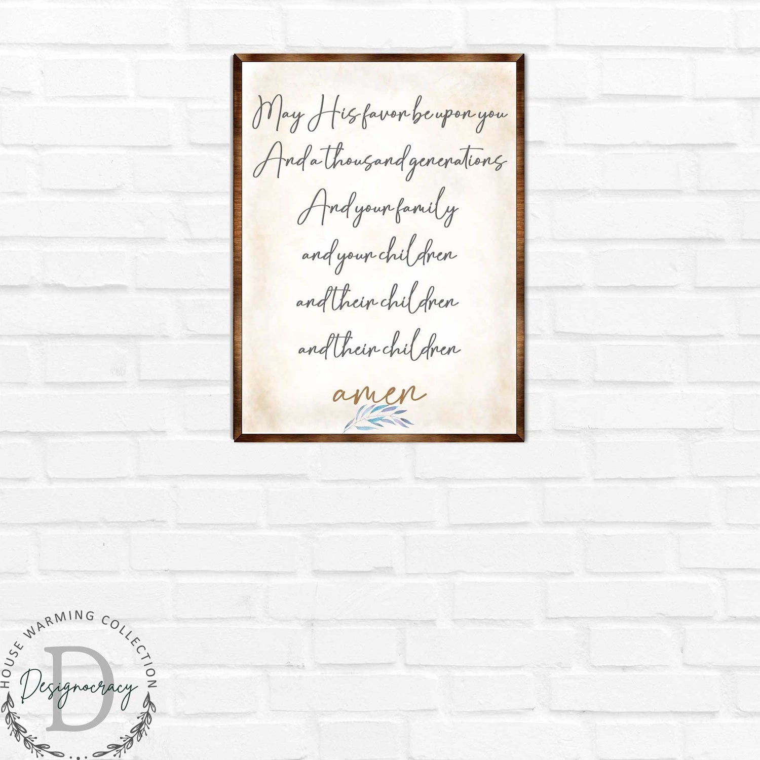Blessing Quote Sign- May His Favor Be Upon You - Housewarming gift - Gift for newlyweds - Bible Verse scripts - Christian sign decor - Wedding gift - Blessing sign - Living room decor - 310353