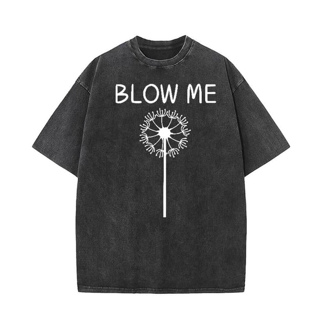 Step into a world of cheeky humor and vintage style with our "Blow Me" vintage-washed T-shirt. Designed for those who love to make a bold statement, this shirt combines a playful slogan with a retro aesthetic. The eye-catching graphic print will ensure you stand out in any crowd, making it a perfect conversation starter.