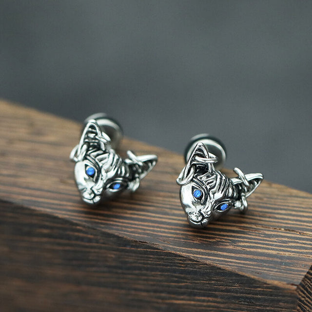Blue Eye Cat Stainless Steel Stud Earring - Stainless Steel / A Pair is backordered and will ship as soon as it is back in stock.