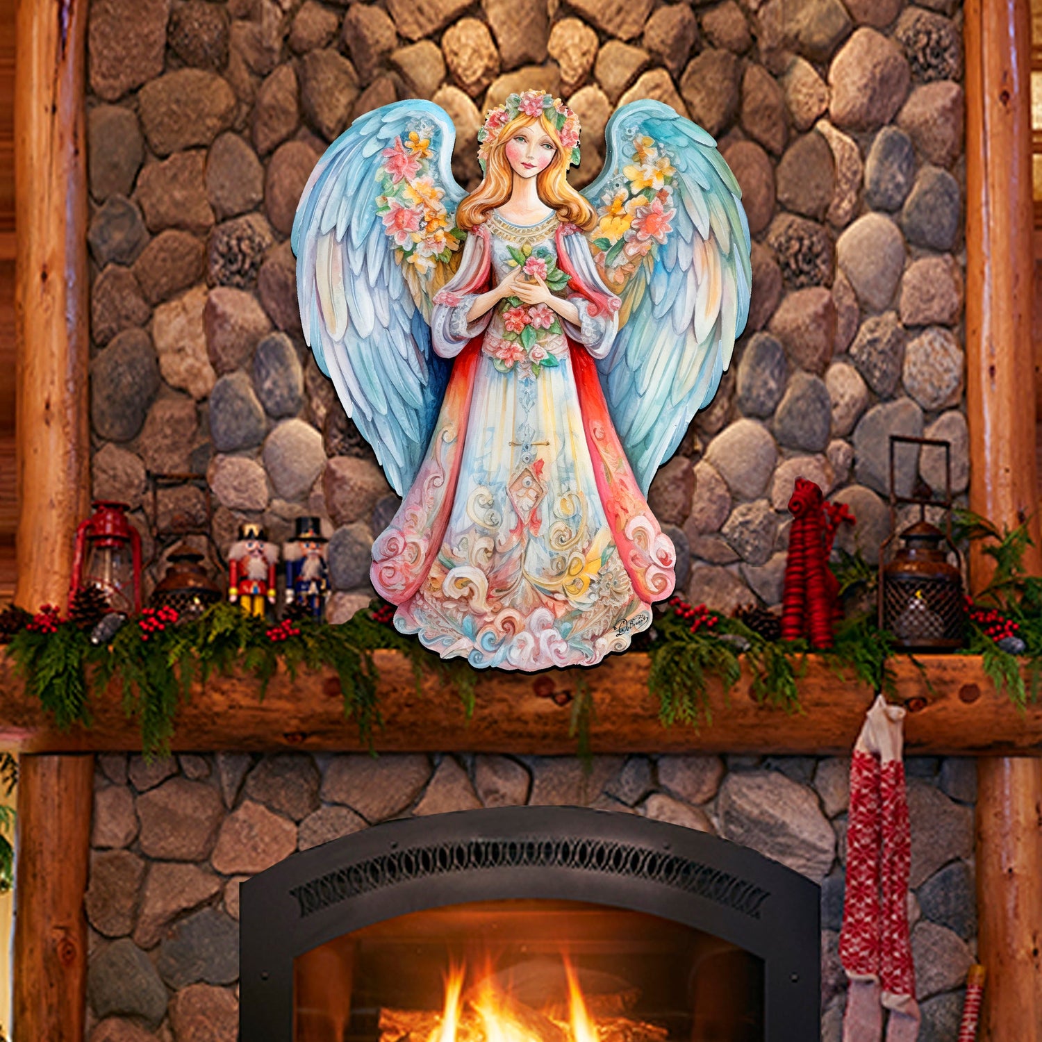 Blue Floral Angel Holiday Door Decor by G. Debrekht - Christmas Decor - 8611024H