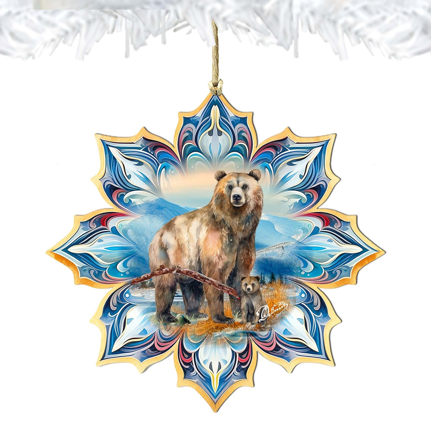 Brown Bear Snowflake Wooden Ornaments by G. Debrekht - Nature Wildlife Decor - 8688409