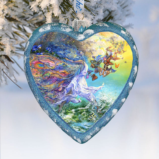 Butterfly Fairy Heart Glass Ornament Limited Edition by Josephine Wall - Christmas Decor - 738-409-JW
