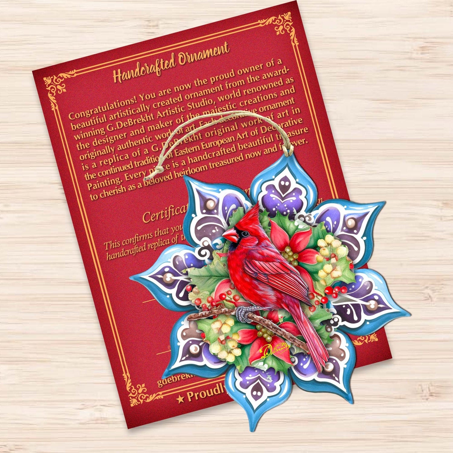 Cardinal Snowflake Wooden Ornaments by G. Debrekht - Nature Wildlife Decor - 8688411