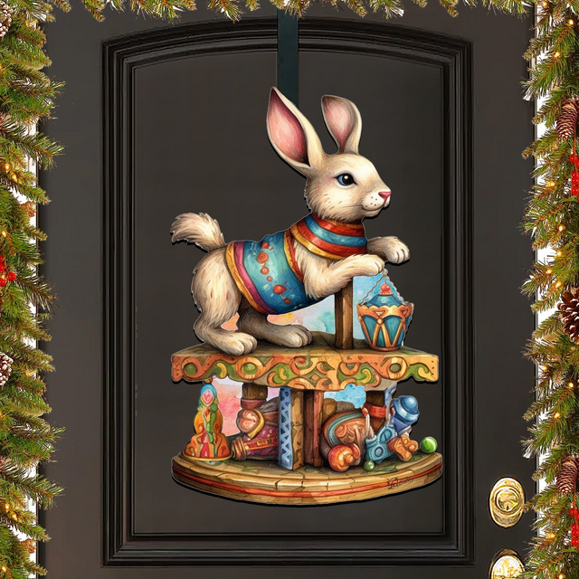 Carousel Bunny with Toys Holiday Door Decor by G. Debrekht - Christmas Decor - 8611086H