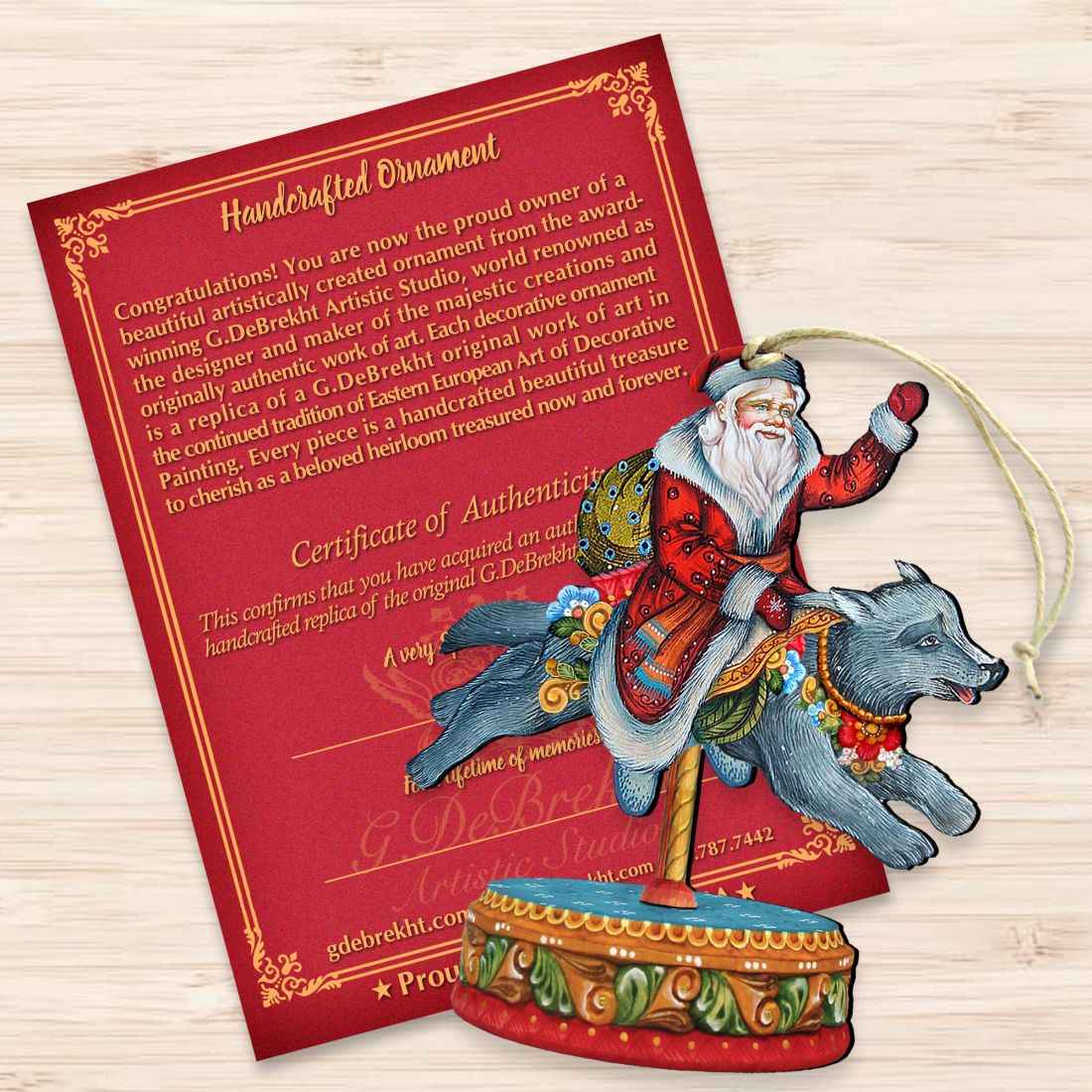 These Wooden Ornaments can become heirlooms in your family or special Christmas gifts for your friends. Shop for Carousel Santa Wolf today at G. Debrekht and create the most unique and memorable Decoration this holiday season.