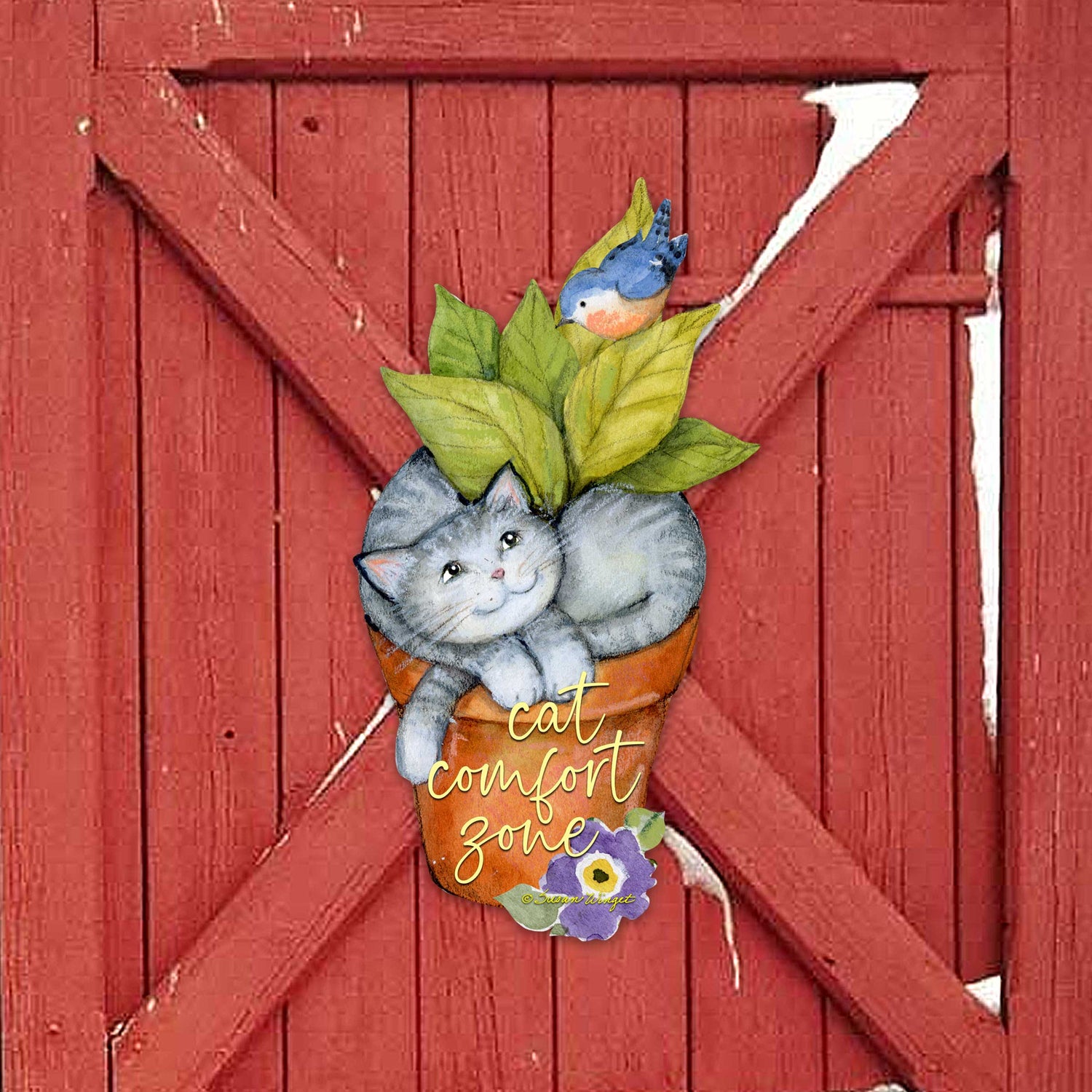 Cat Lovers Welcome Sign Cats Comfort Zone in a Pot Door Wreath - Handmade Gift for Porch Decor by Susan Winget - 8471214H-SW is backordered and will ship as soon as it is back in stock.