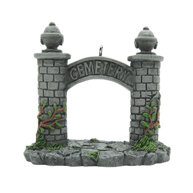 Enter at your own risk! The people were dead when they were buried in this cemetery, but we aren’t so sure anymore. This ornament tells all who are near- beware!