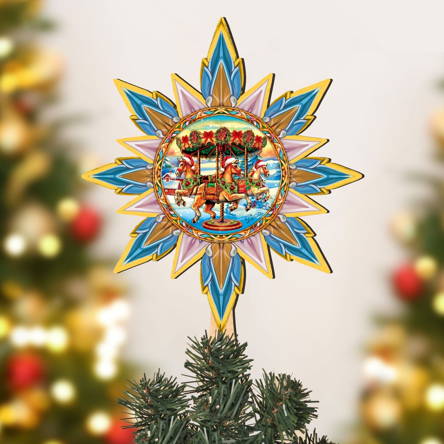 Christmas Carousel Star Tree Topper Wooden Decor by G. Debrekht - Carousel Holiday Decor - 89506