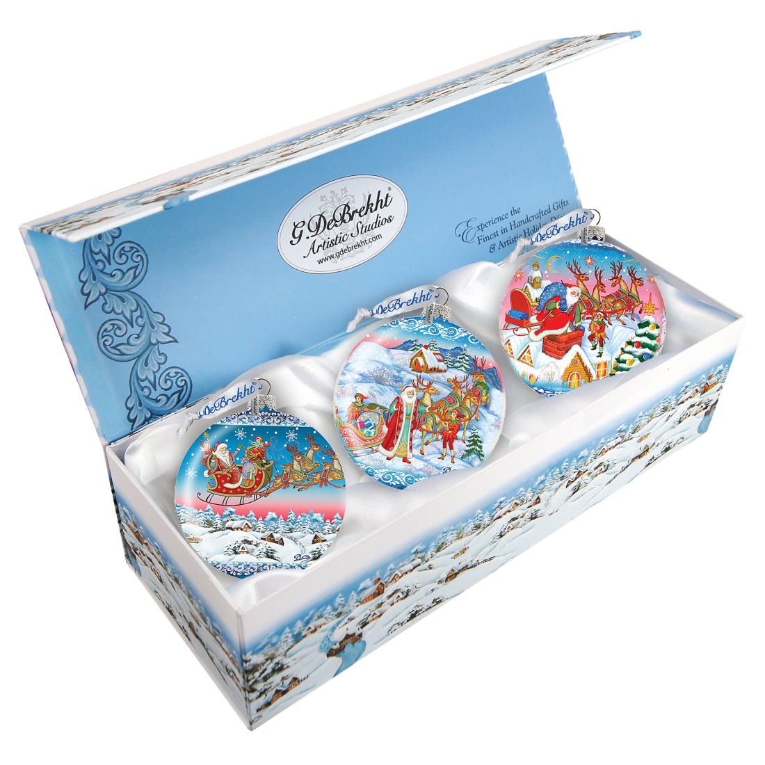 Christmas Is Coming Glass Ornament Set of 3 by G. DeBrekht - Christmas Santa Snowman Decor - 73741-S3