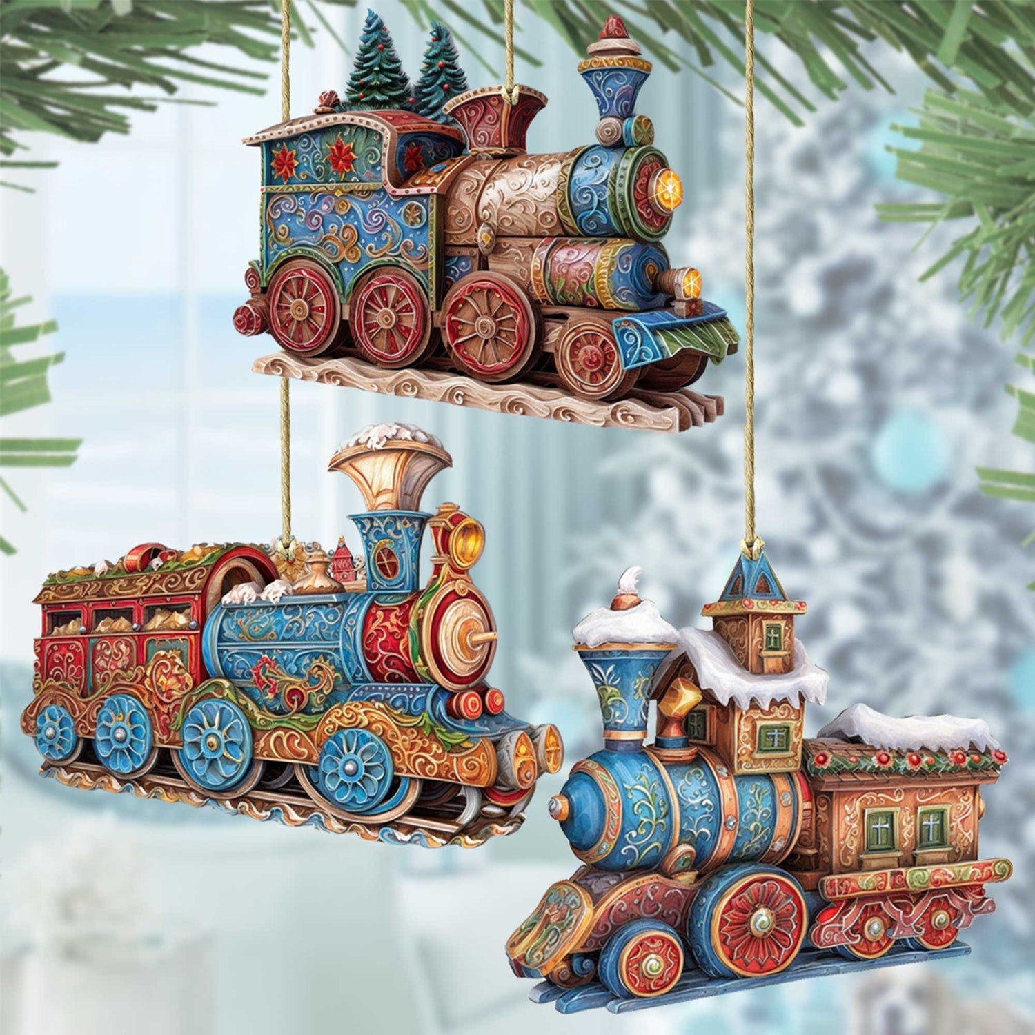 Christmas Train Wooden Ornaments Set of 3 by G. Debrekht - Christmas Decor - 8100198S3
