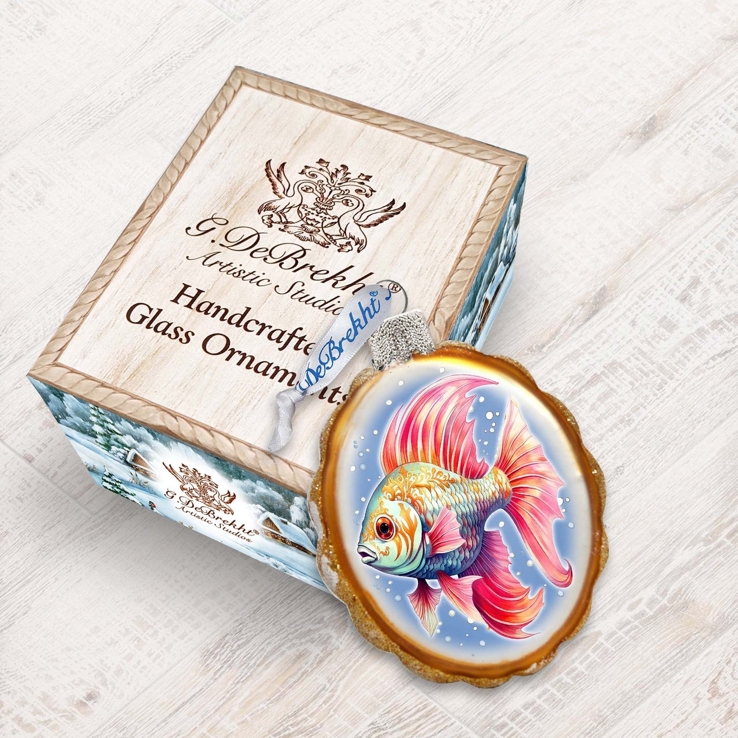 Introduce a touch of coastal charm to your holiday Decor with these Red Fins Fish Keepsake Glass Ornaments by G. Debrekht. Made with exquisite attention to detail; each ornament features vibrant red fins that evoke the beauty of the ocean. A must-have for any beach lover's Christmas tree.