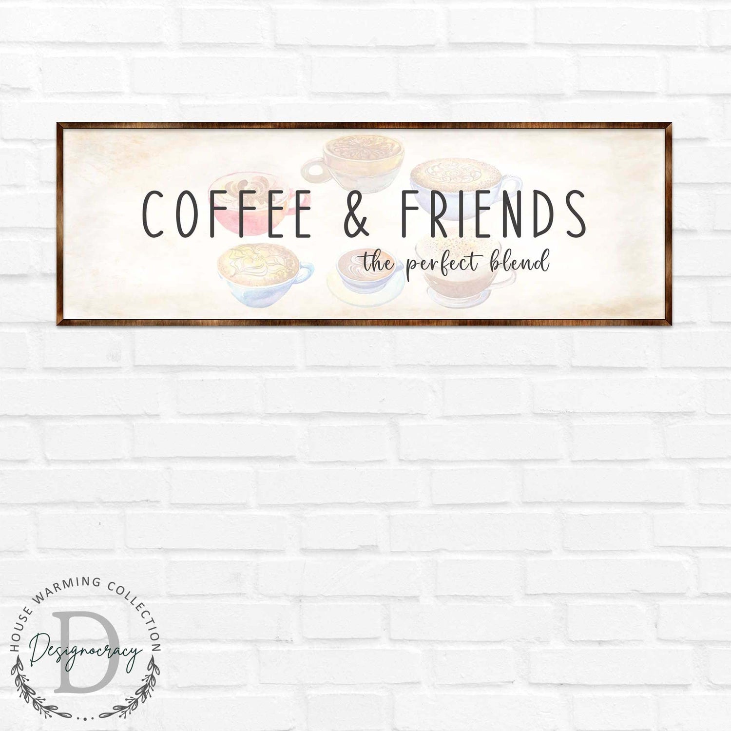 Coffee & Friends the Perfect Blend - Wooden Coffee shop decor - Farmhouse decor - Wooden Wall art - Kitchen decor - Farmhouse kitchen - Coffee nook - 310314 - Small 27"x9" is backordered and will ship as soon as it is back in stock.