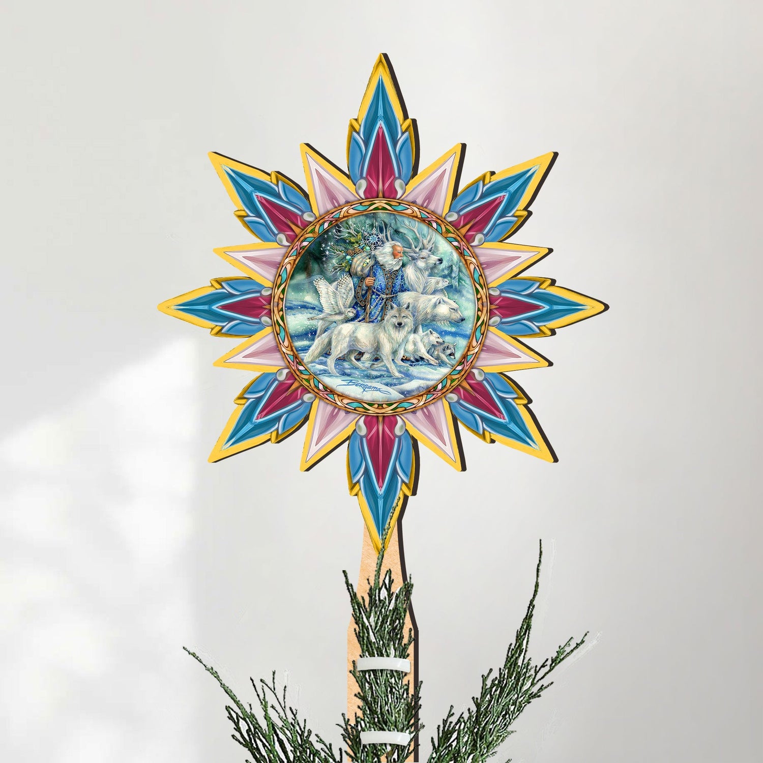 Cool Winds Father Winter Animals Tree Topper Wooden Decor by J. Bergsma - Santa Snowman Decor - 89521-JB