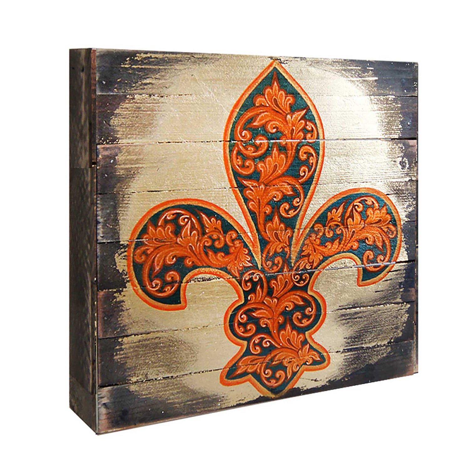 Cross Fleur de Lis Wooden Gold Plated Wall Art by Museum Icon - Celtic Decor - 850442-09
