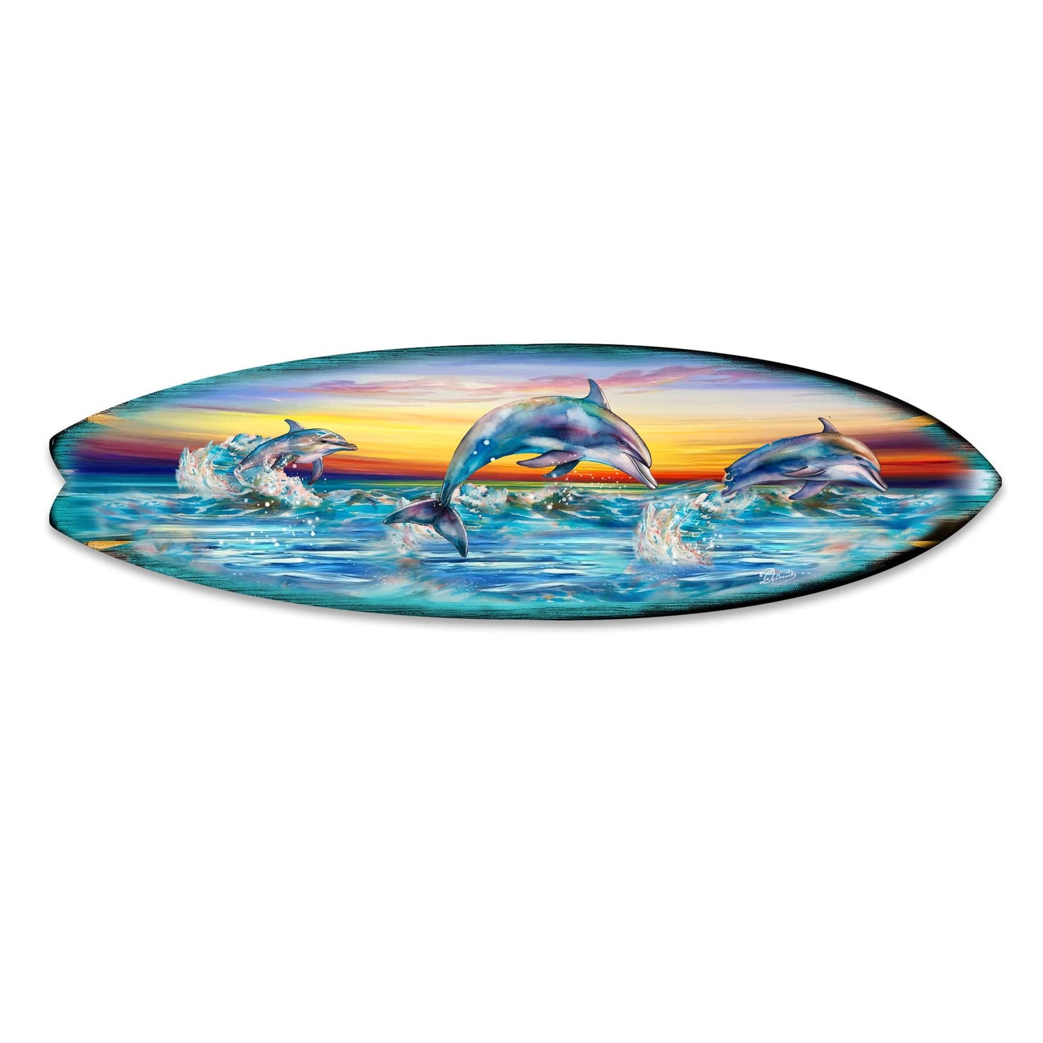Dolphin's Dance Surfboard Coastal Wall Art by G. DeBrekht - Coastal Holiday Decor - 8490122HS