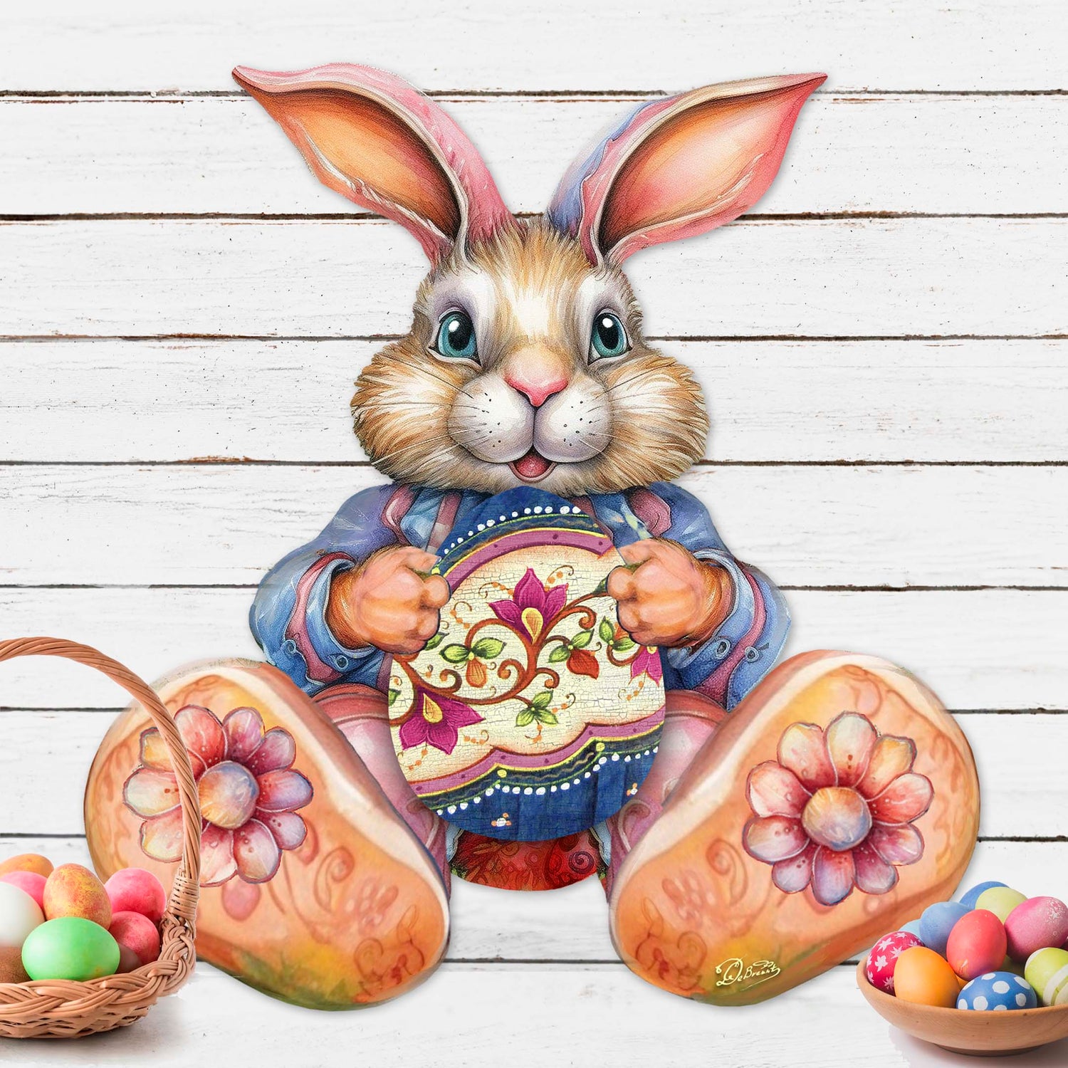 Easter Bunny Boy with Egg Holiday Door Decor by G. Debrekht - Easter Spring Decor - 8652767H