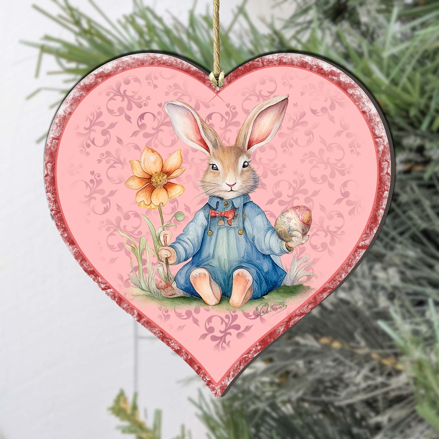 Easter Bunny Heart Wooden Ornaments by G. DeBrekht Easter Spring Decor - 8652780