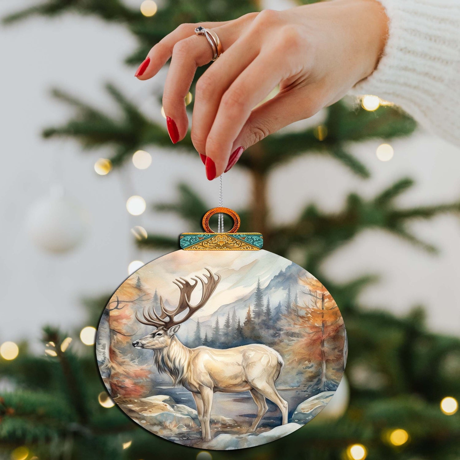 Elk in Alaskan Heights Wooden Ornaments by G.Debrekht - Wildlife Holiday Decor - 870056