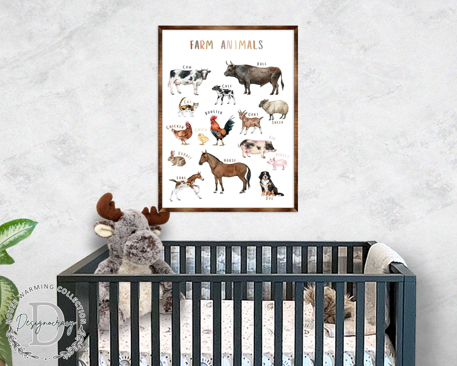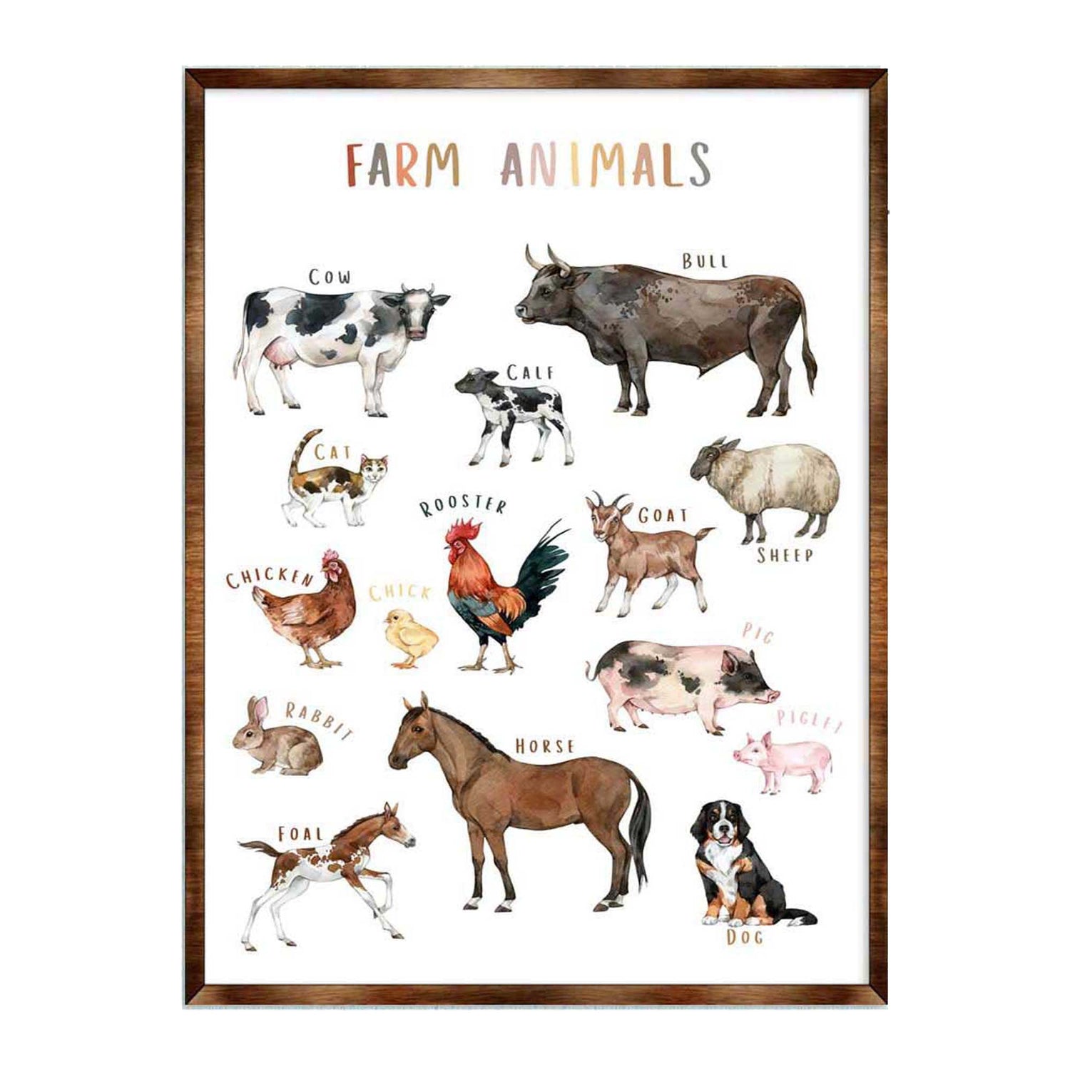 Farm Animals - Wooden Kids Room Decor - First day of school gift - ABC 123 Kids - Montessori Homeschool wooden poster I Educational Poster - Classroom Decor - 310215
