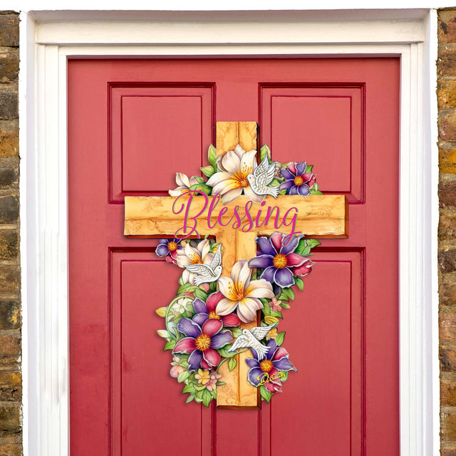 Floral Dove Blessing Cross Holiday Door Decor by G. Debrekht - Easter Spring Decor - 8688163H
