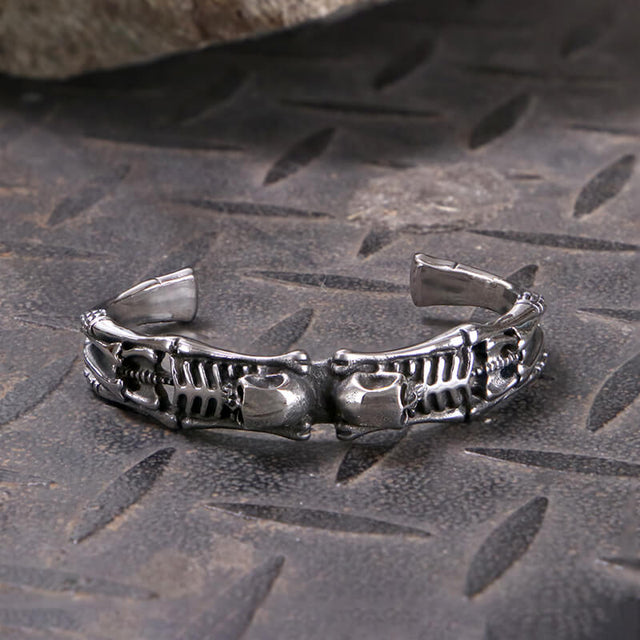 Gothic Skeleton Stainless Steel Skull Bangle Bracelet