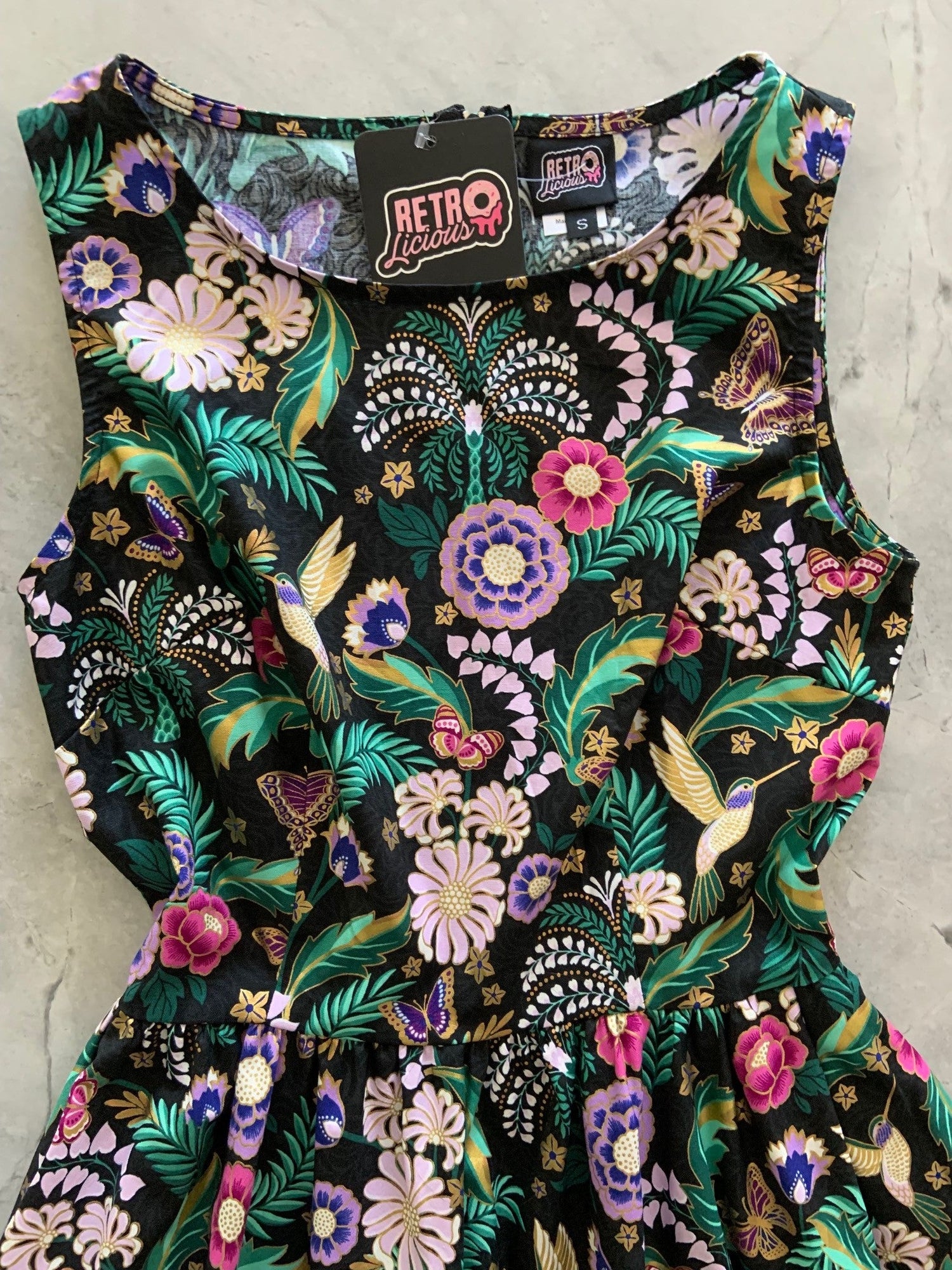 Hummingbird Vintage Dress - S is backordered and will ship as soon as it is back in stock.