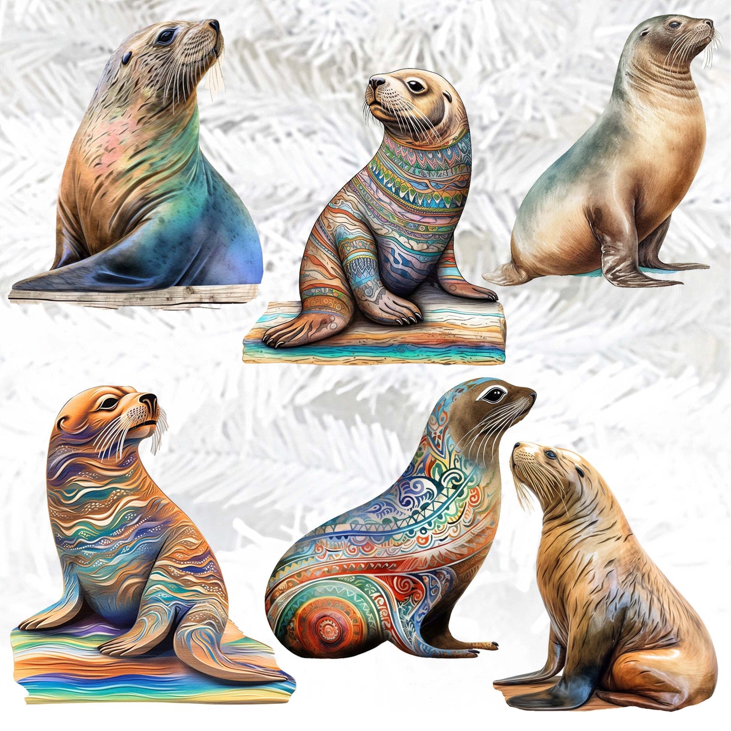Magic Sea Lions Decorative Wooden Clip-on Ornaments Set of 6 by G. Debrekht - Wildlife Decor - 8090112C-S6