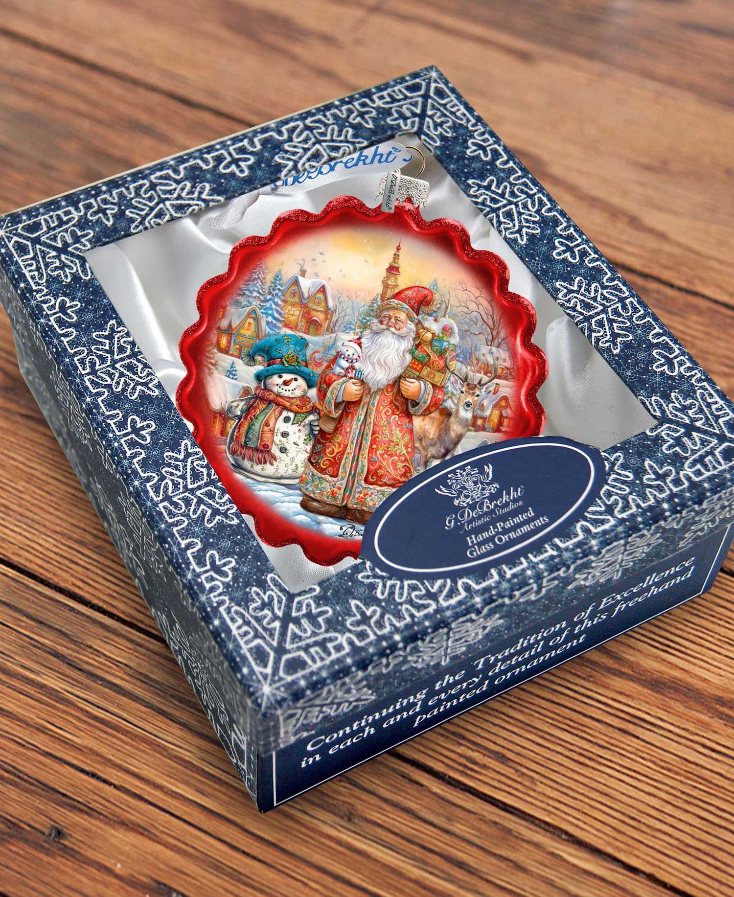 Merry Christmas Wreath Glass Ornament by G. Debrekht - Christmas Santa Snowman Decor - 759-058