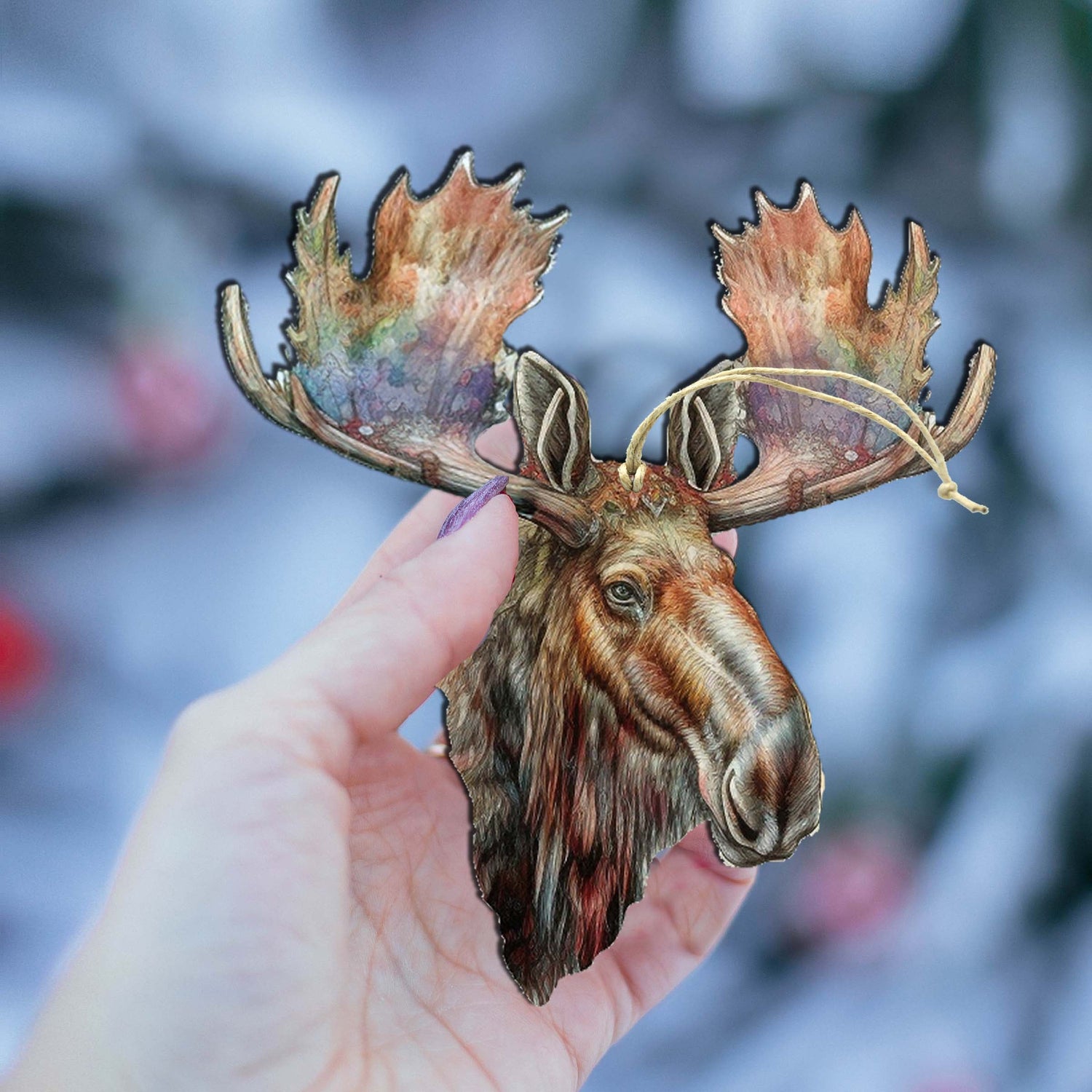 Mighty Moose Of Alaska Wooden Ornaments by G.Debrekht - Wildlife Holiday Decor - 8710108-2 - SINGLE piece is backordered and will ship as soon as it is back in stock.