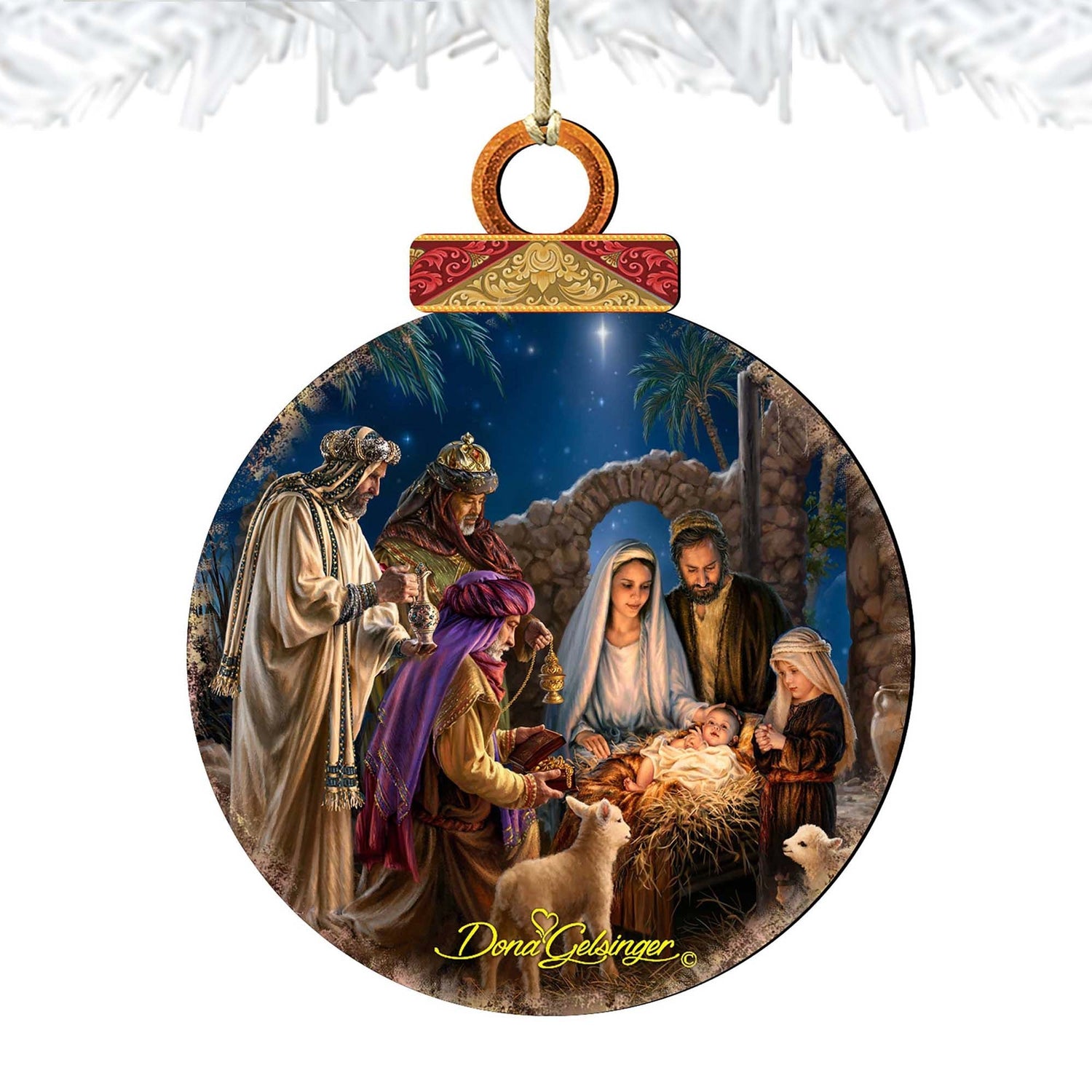 Miracle Nativity Wooden Ornaments by Gelsinger - Nativity Holiday Decor - 8021042-1201 - SET of 2 is backordered and will ship as soon as it is back in stock.