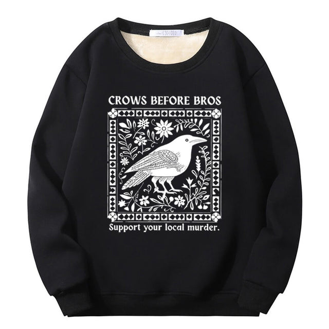 Multicolor Crows Before Bros Crew Collar Fleece Sherpa Sweatshirt