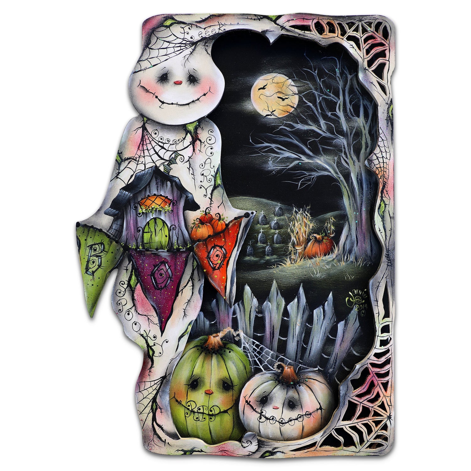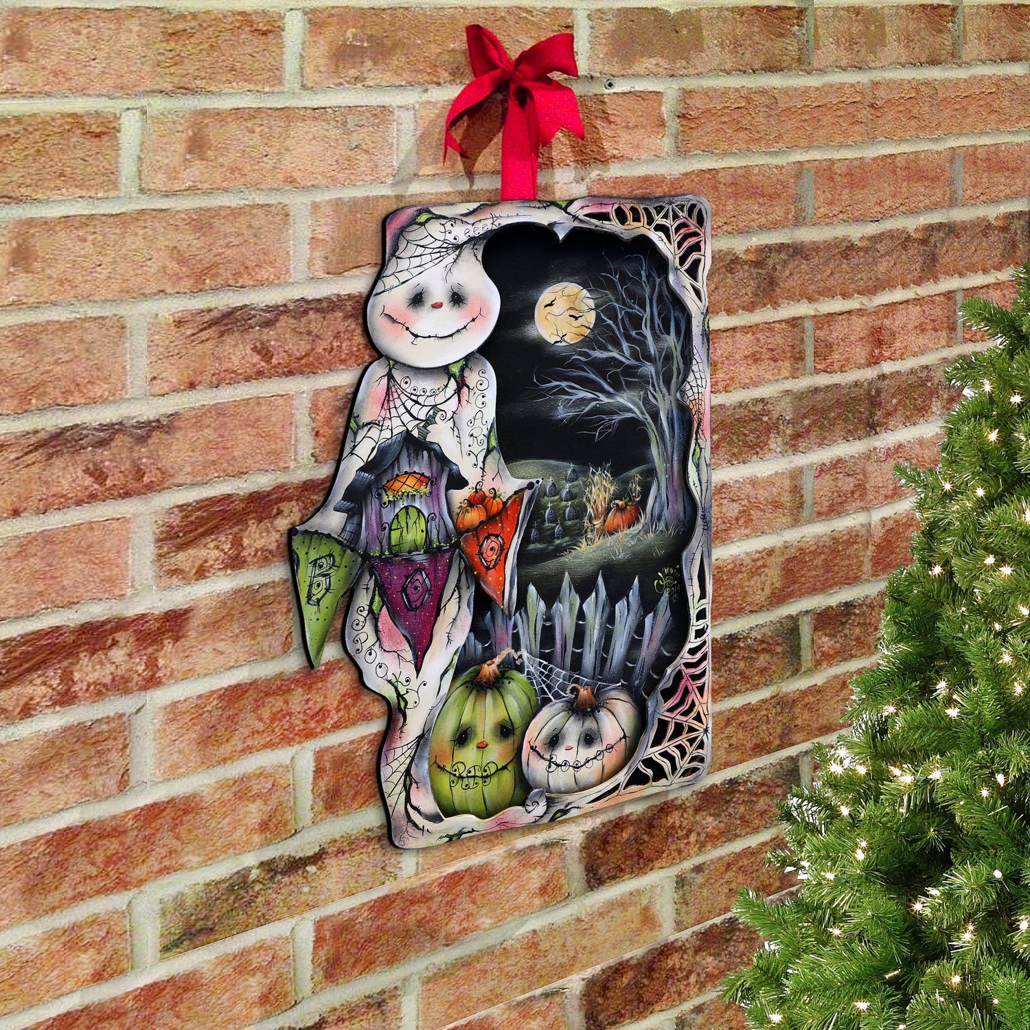The Night of the Pumpkins Holiday Door Decor by J. Mills-Price is a perfect way to spookify your Halloween Decor. This wooden door decor is made from durable wood and is the perfect addition to your spooky holiday celebration.