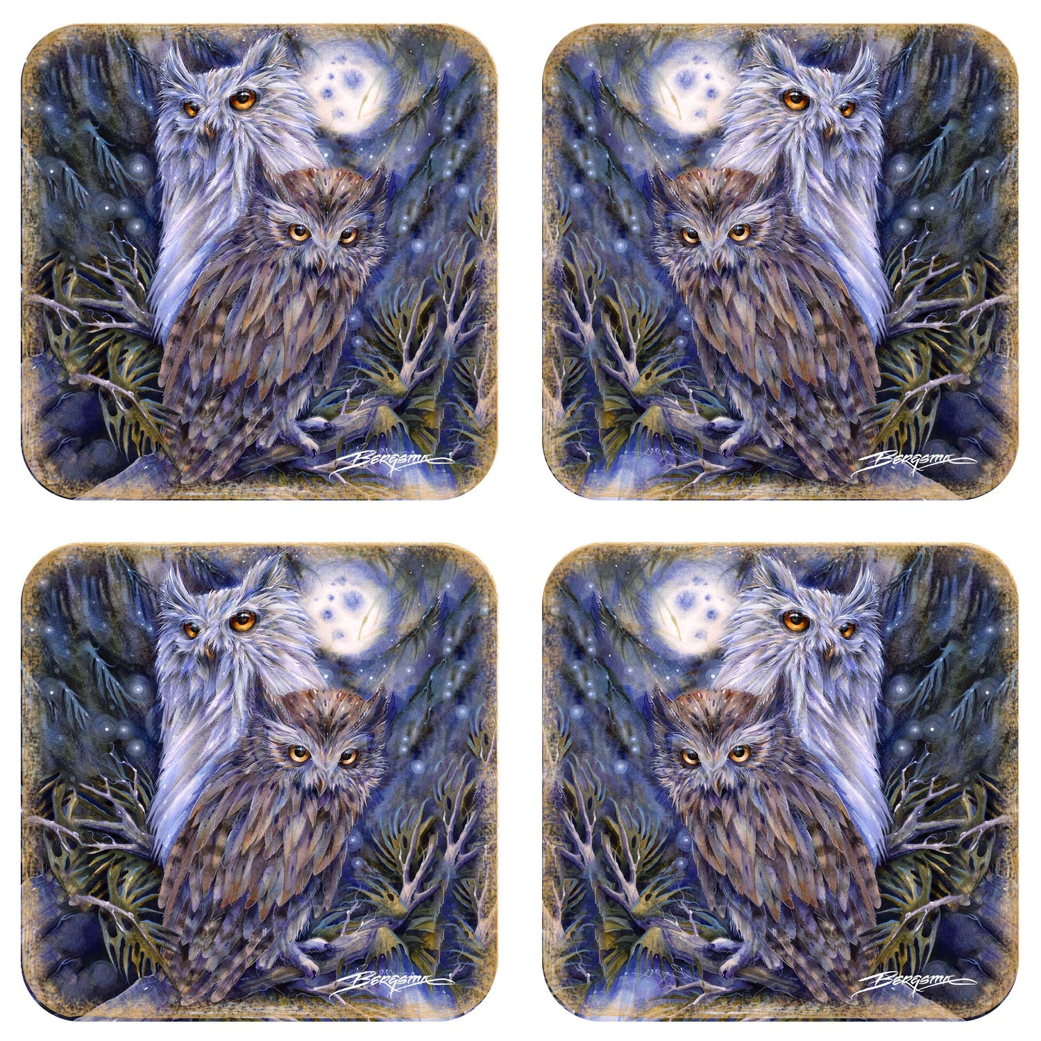 Night Watch Owls Wooden Cork Coasters Gift Set of 4 by J. Bergsma - Wildlife Decor - 8199465C-S4