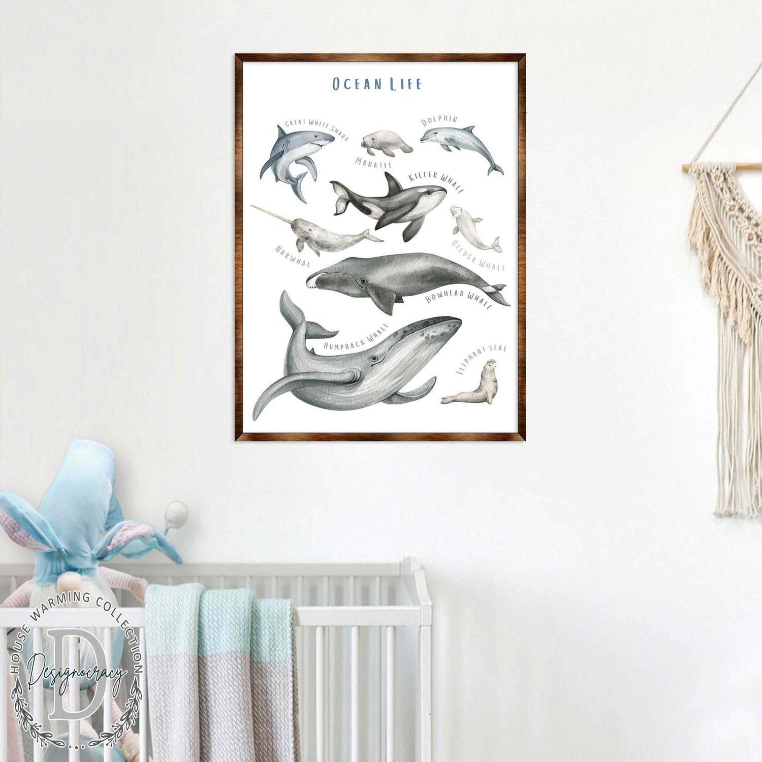 Ocean Animals Wooden Kids Room Décor - First day of school gift - Homeschool I Montessori wooden Educational Poster - Classroom Décor - Playroom Art - 310216